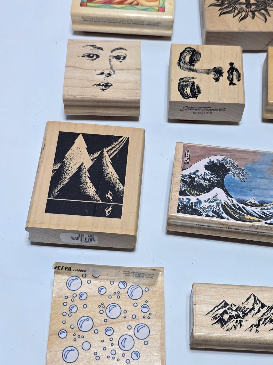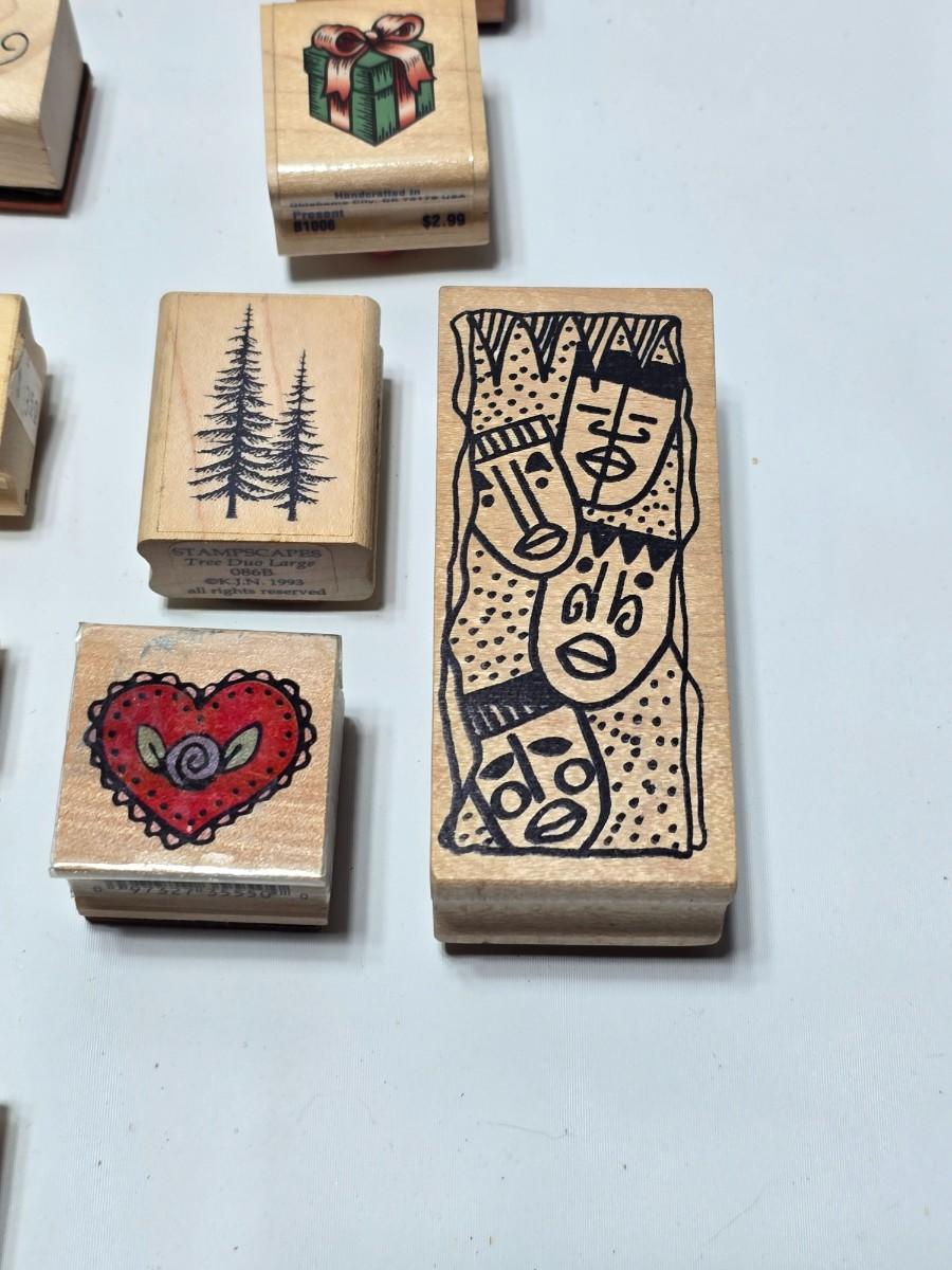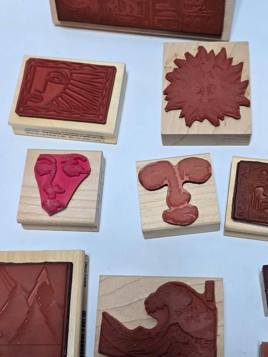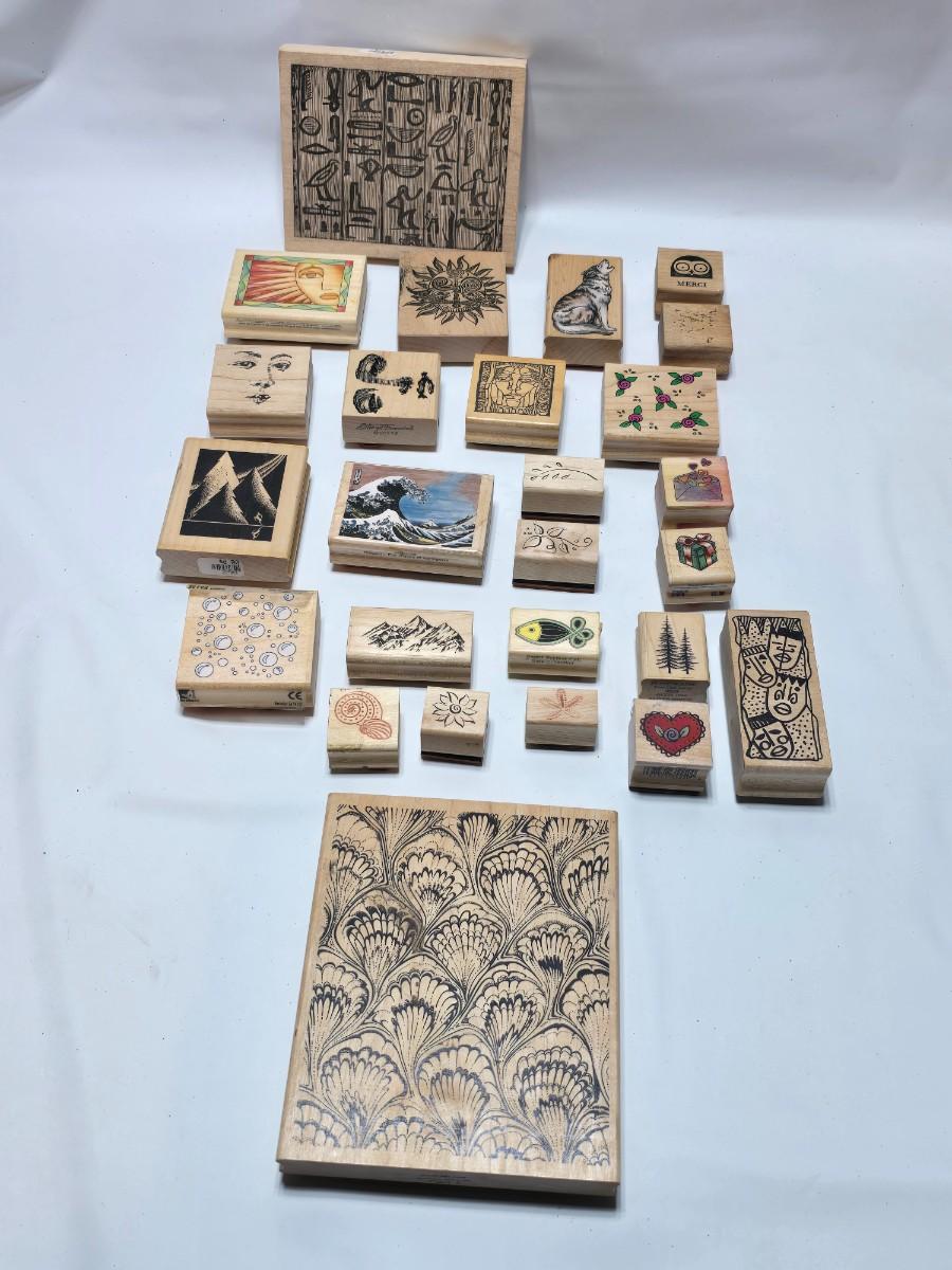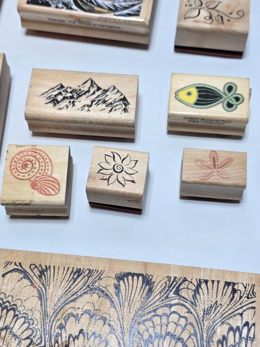Mounted wood block stamps - large assortment - crafting stamps - Faces, Florals, Textures and more