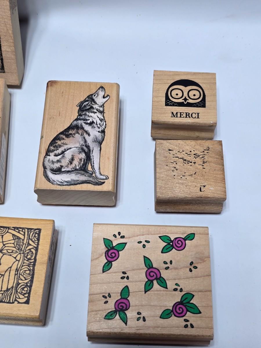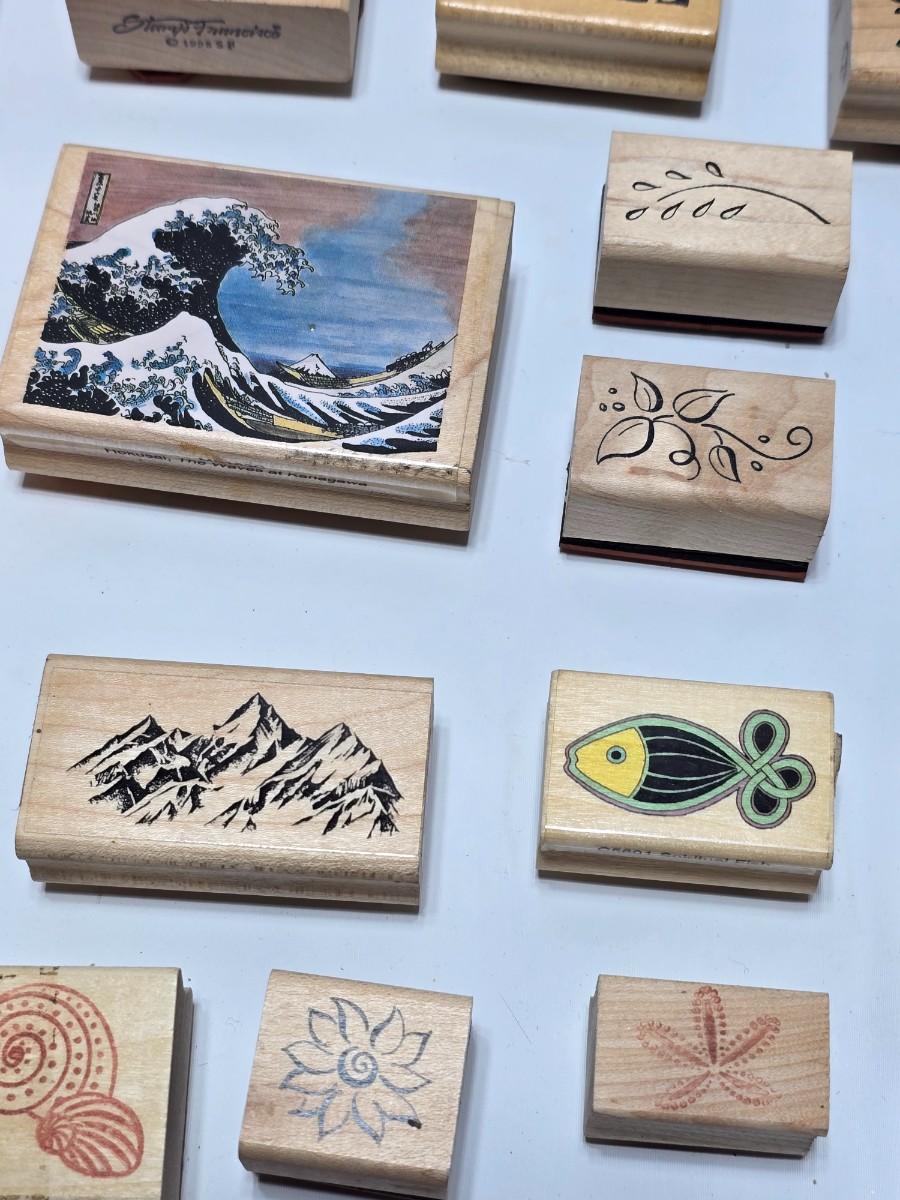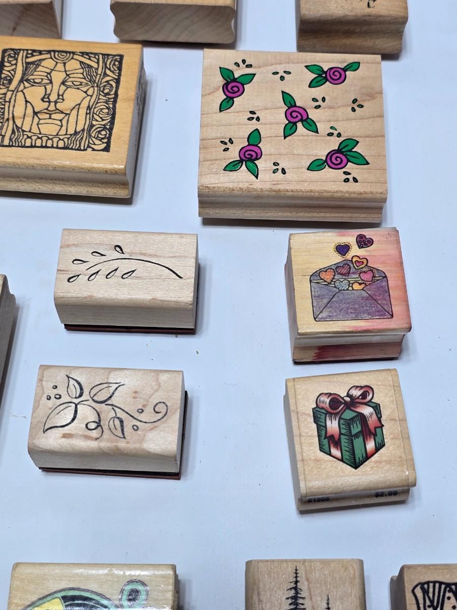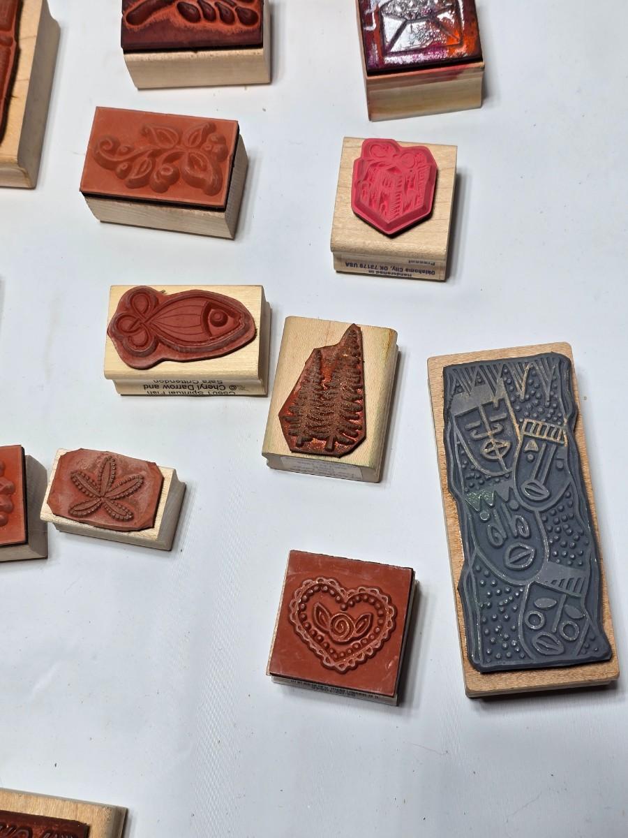 Mounted wood block stamps - large assortment - crafting stamps - Faces, Florals, Textures and more