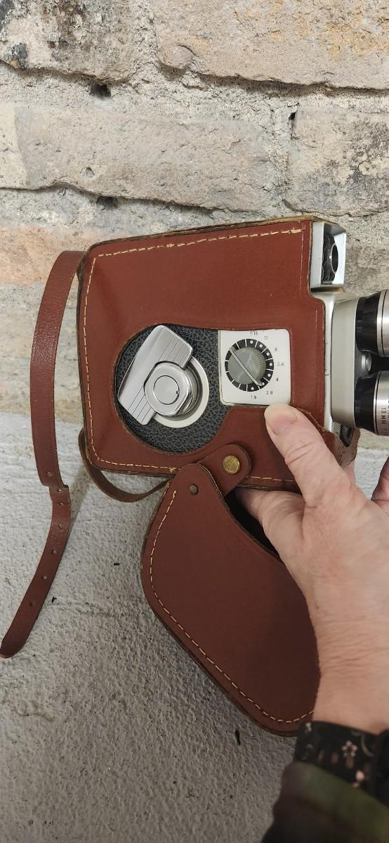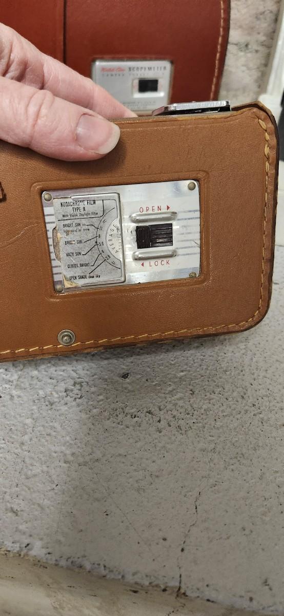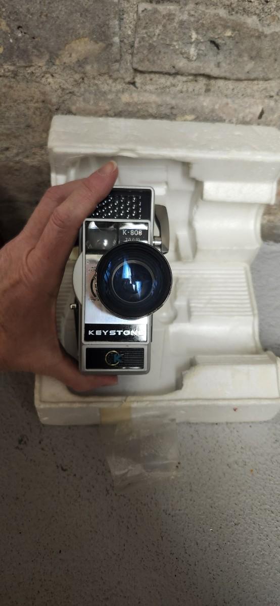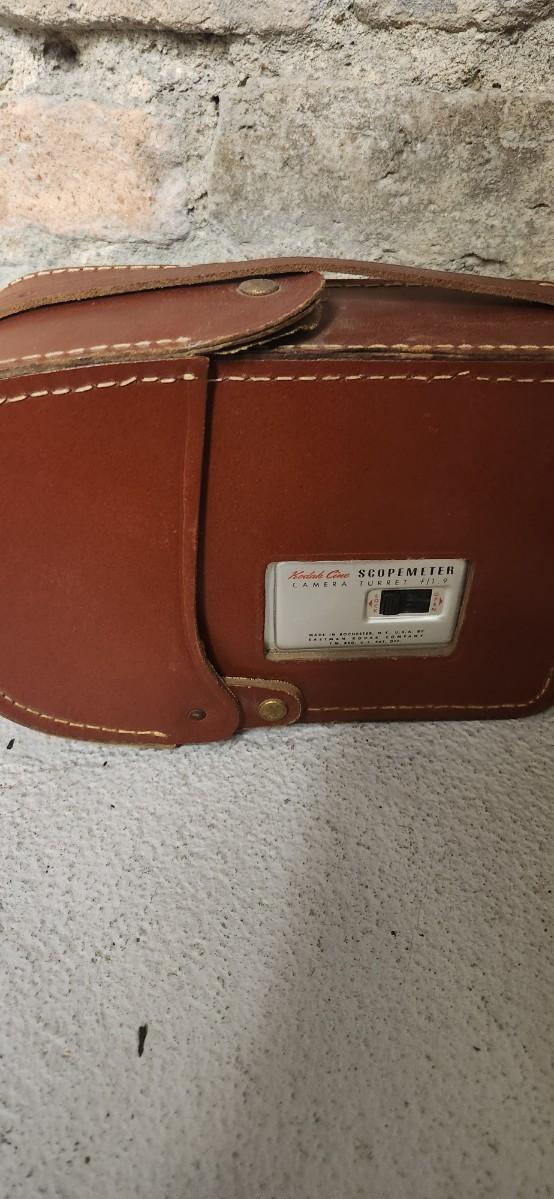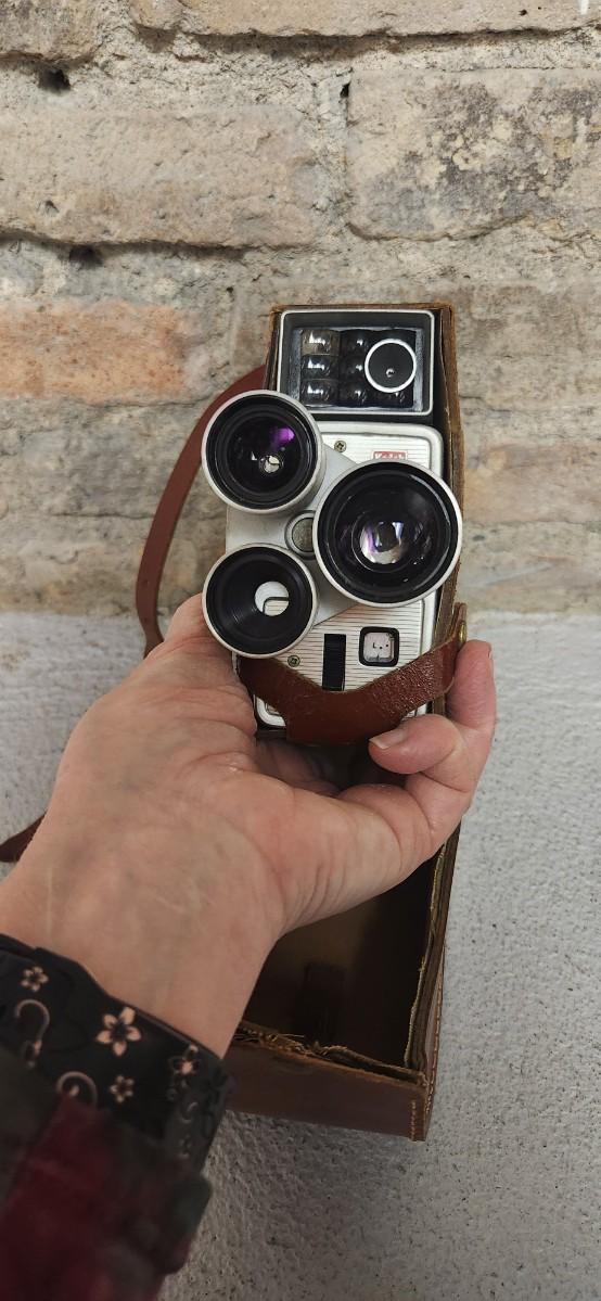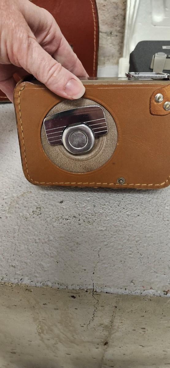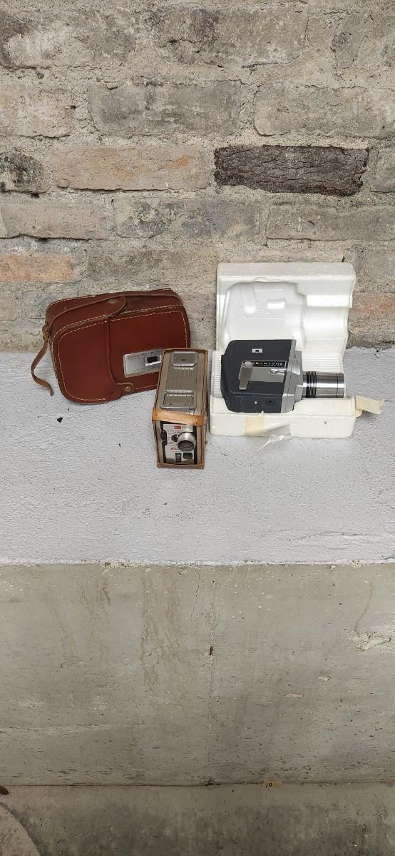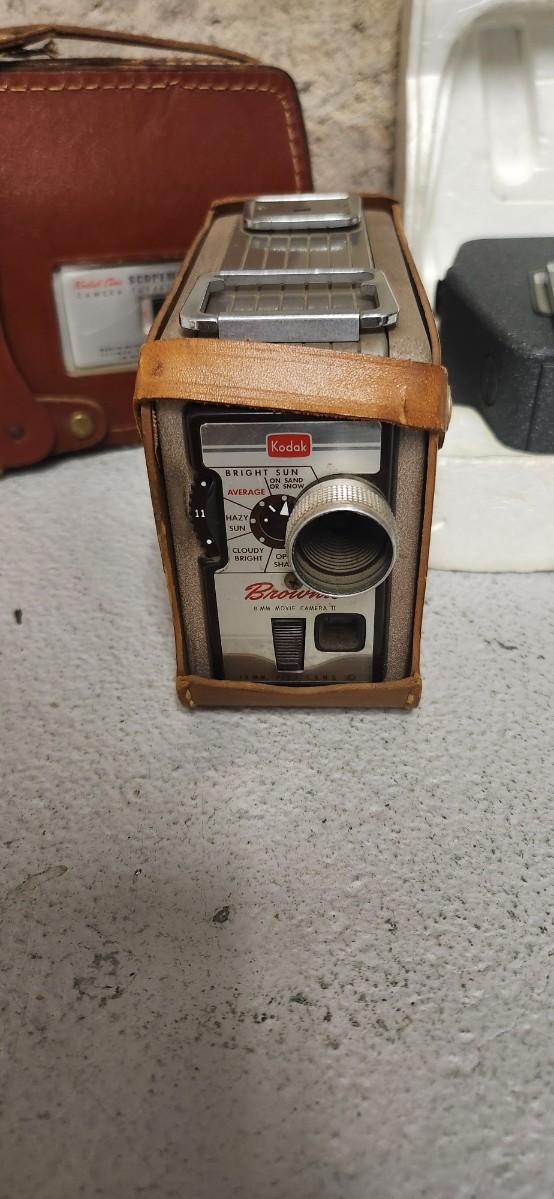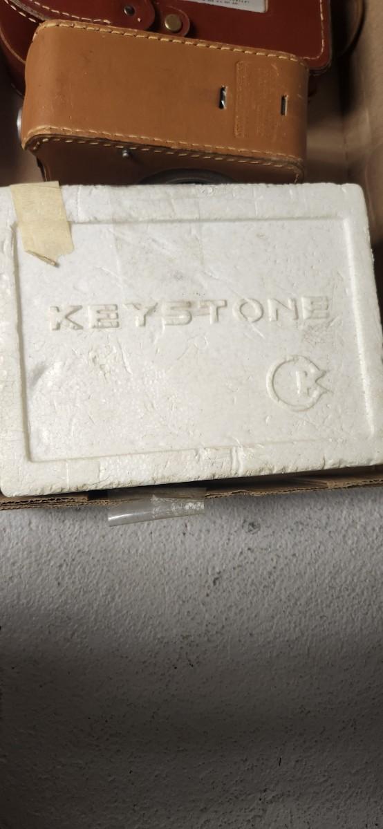Keystone zoom in Styrofoam and a Kodak Brownie in case