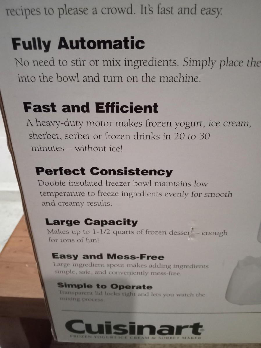 CUISINART FROZEN YOGURT-ICE CREAM & SORBET MAKER