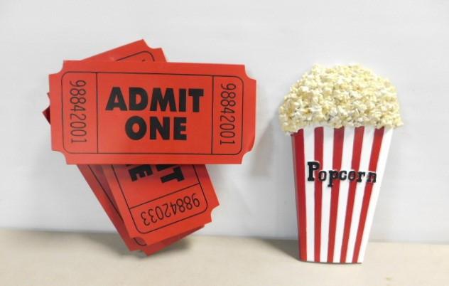 Movie Time Wall Art Metal Ticket Stubs and Resin Popcorn Bucket 13"