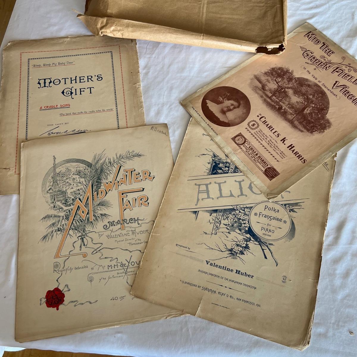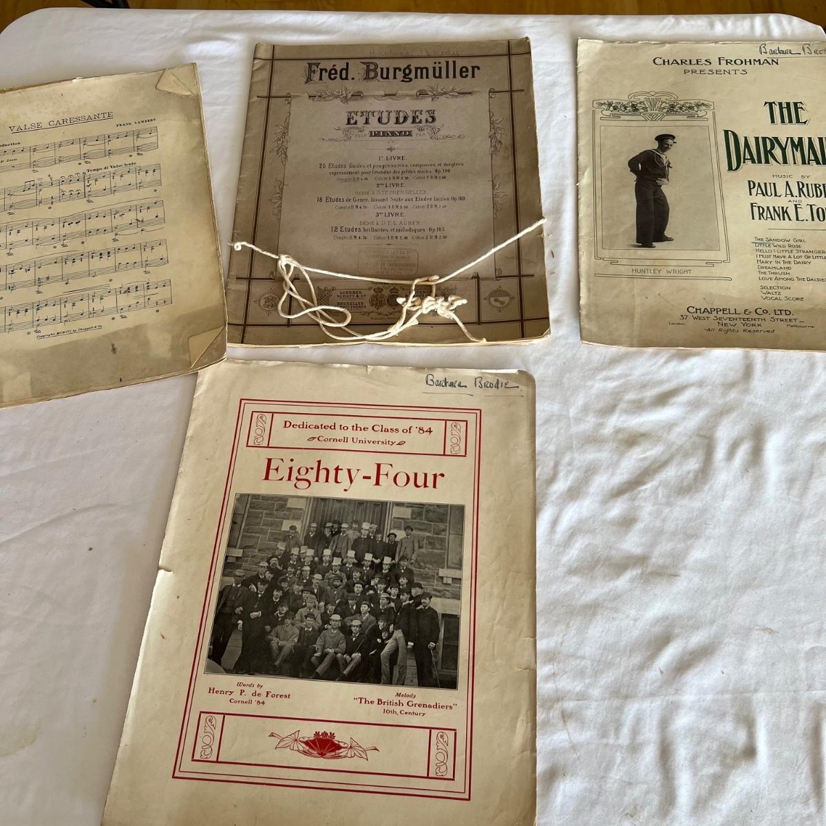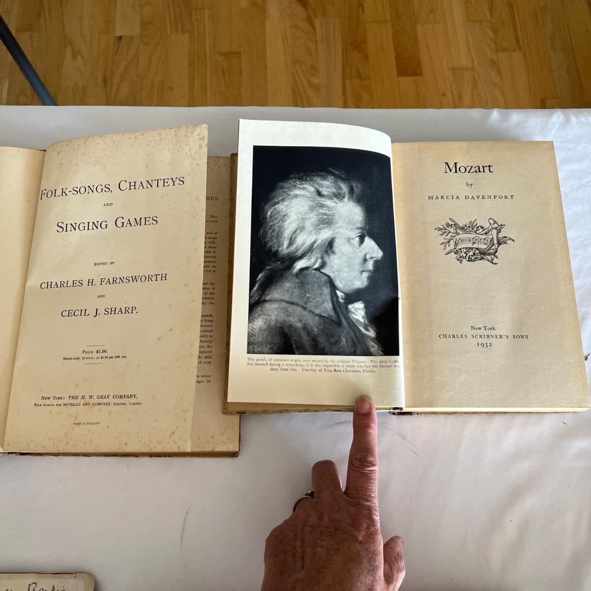 A nostalgic music related assortment in this lot that includes numerous books with sheet music and a book about Mozart. See images for full inventory.