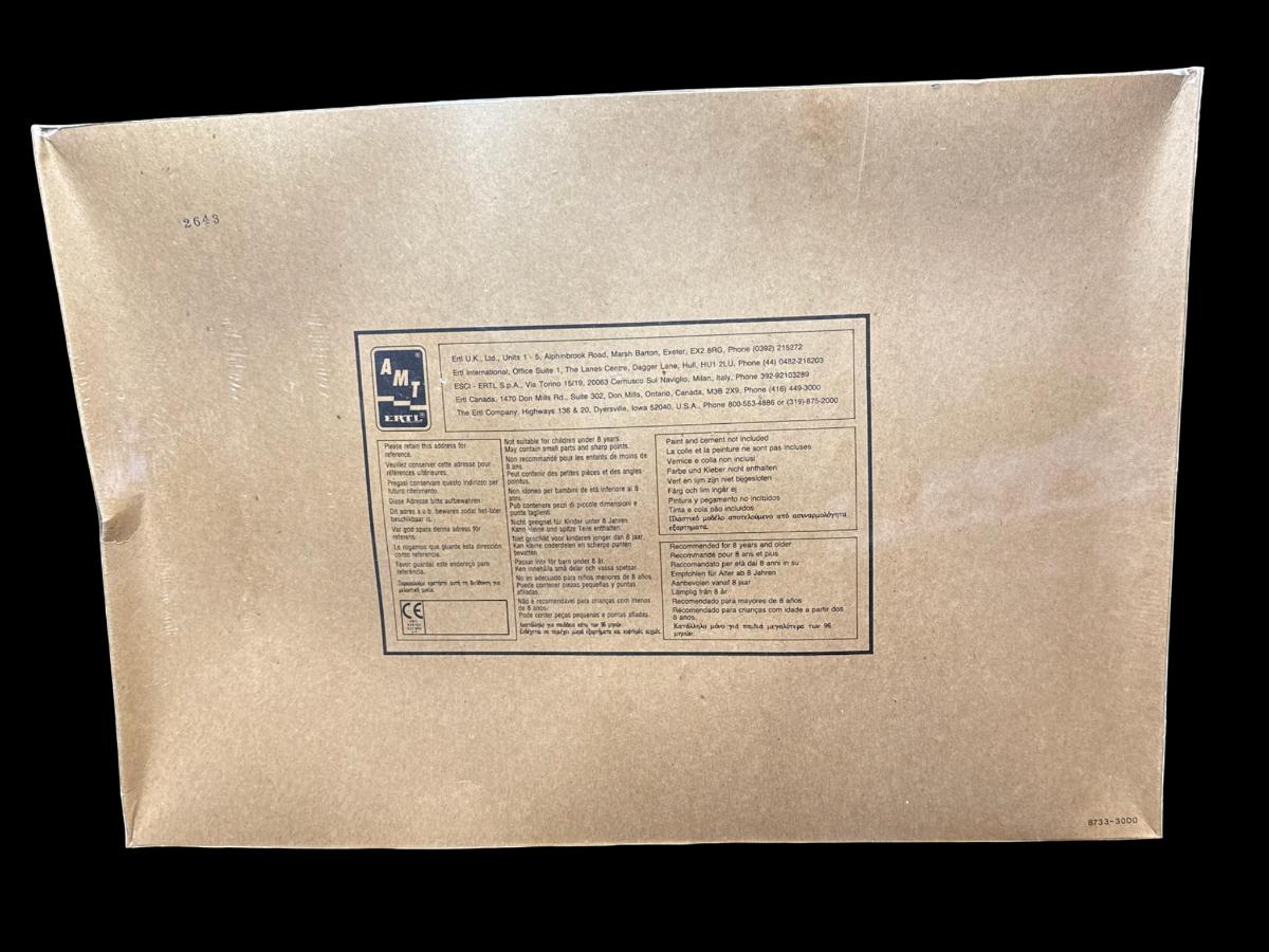NOS. This is from 1983. When completed, this model is about eight inches long with a 20 inch wingspan. It features folding wings and extended ramp, and comes with a Darth Vader figure. In the original unopened factory sealed box with plastic overwrap. Pre-auction estimate: $75-$150.
