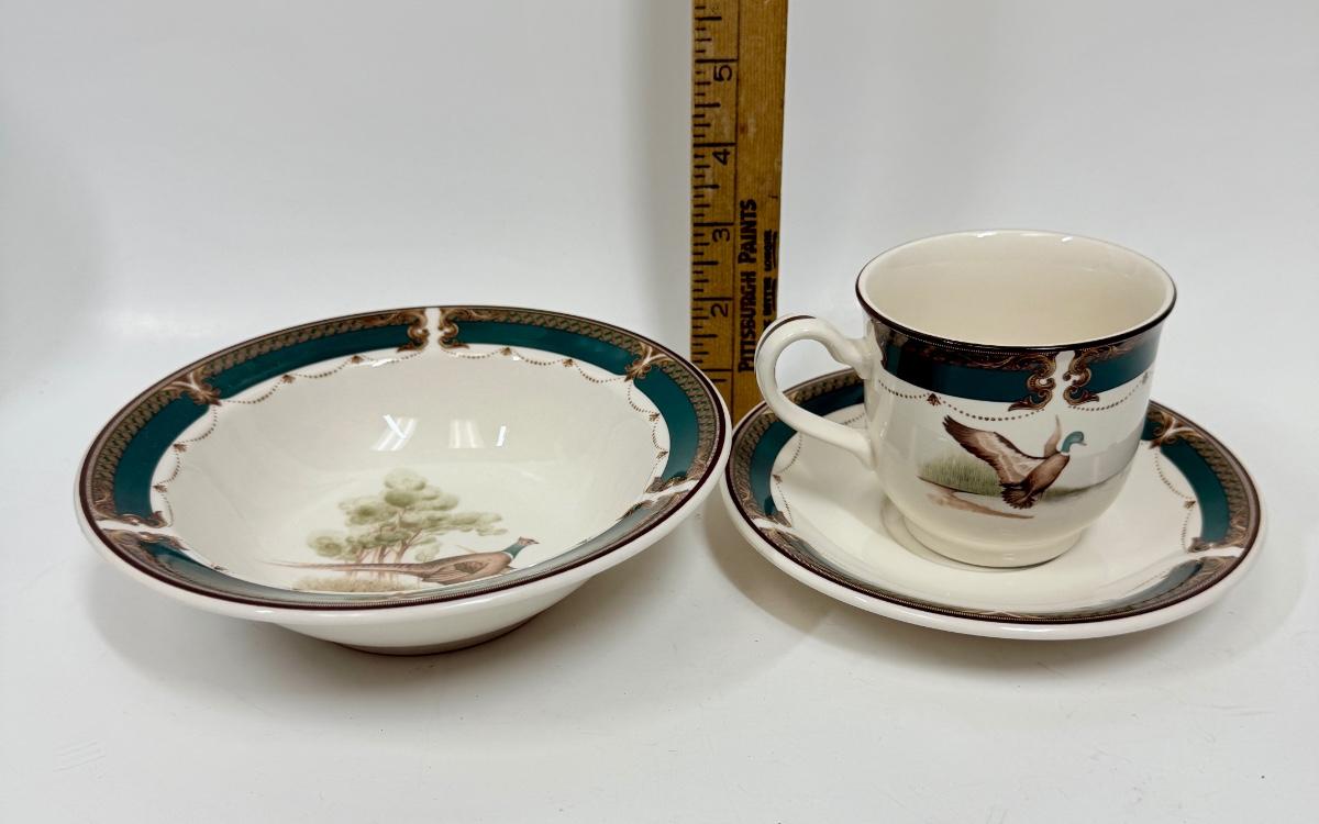 IRELAND 9198 WICKLOW GREEN by Keltcraft designed by Noritake 3 pieces - cup and saucer with bowl