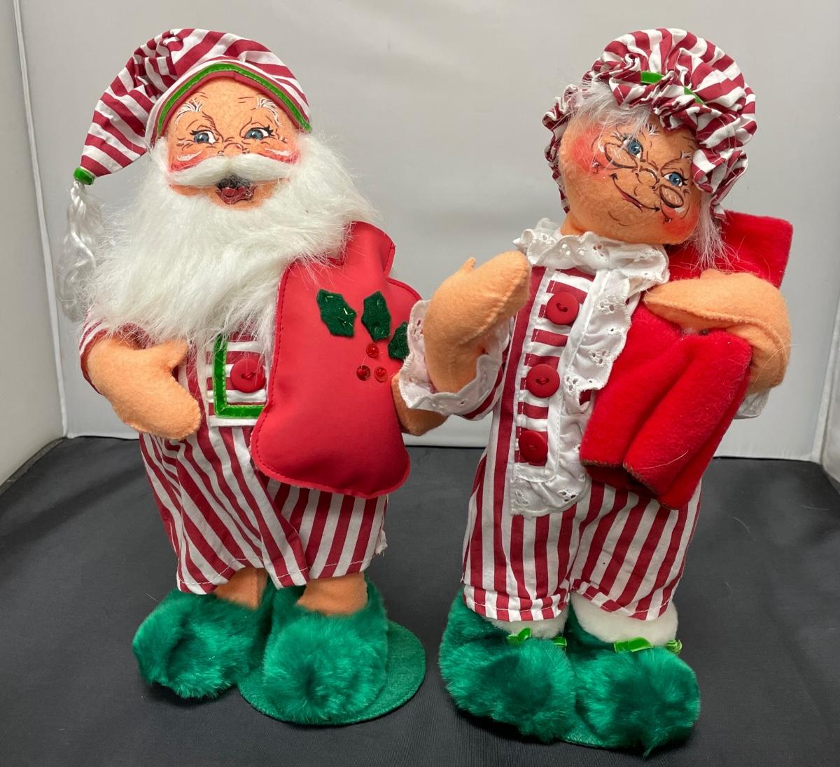 Annalee Poseable Plush Santa & Mrs. Clause in Pajamas Christmas Holiday Figurines