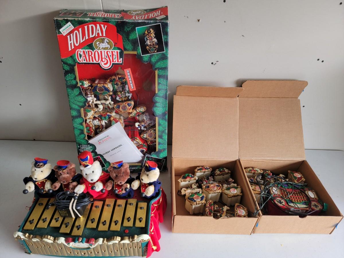 Mr. Christmas 2 sets of Carousel  Musical Tree Ornaments & Bandstand Bears