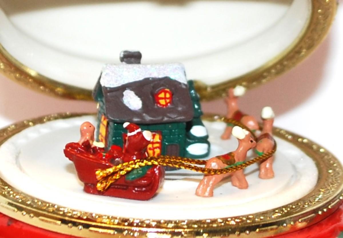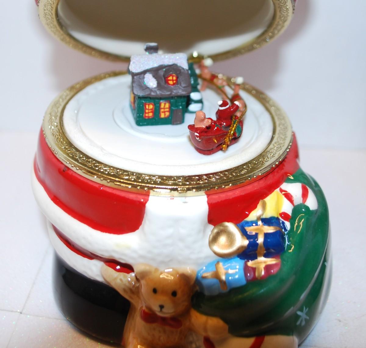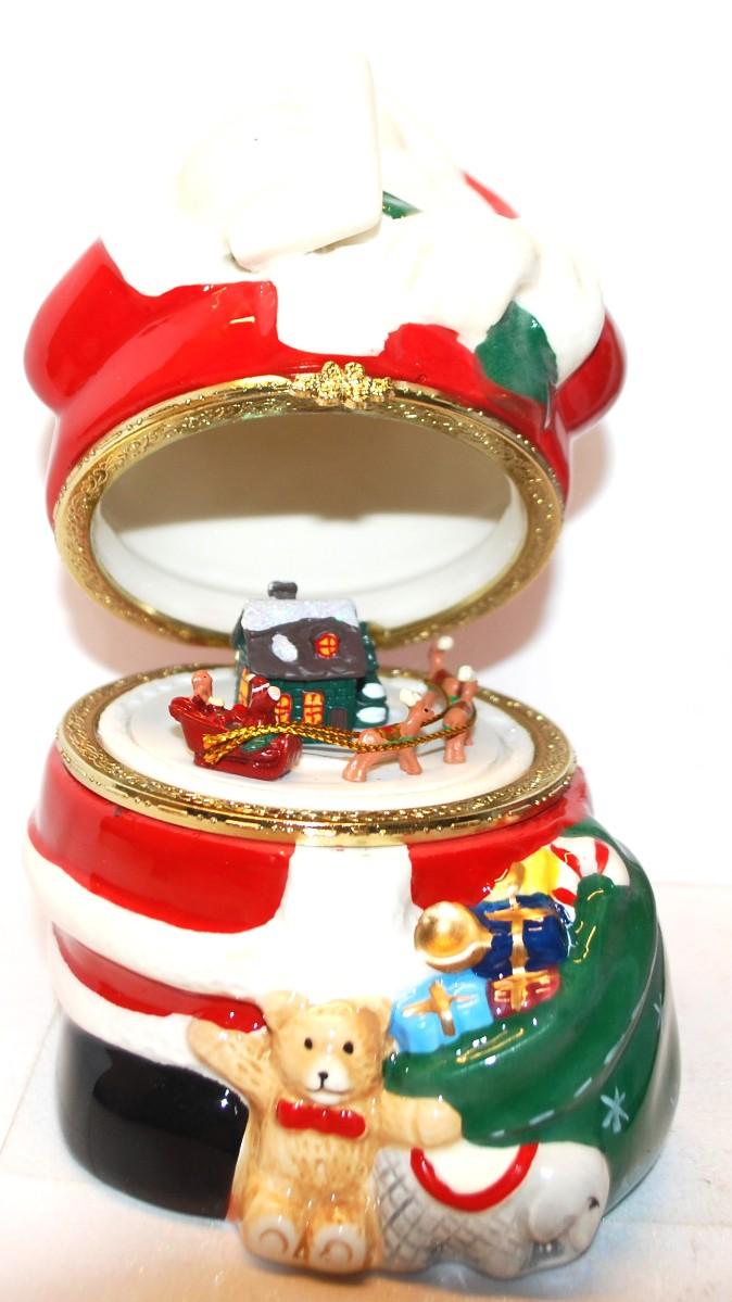 "Mr. Christmas" Animated Porcelain Music Box - Plays "Jingle Bells" 8" H