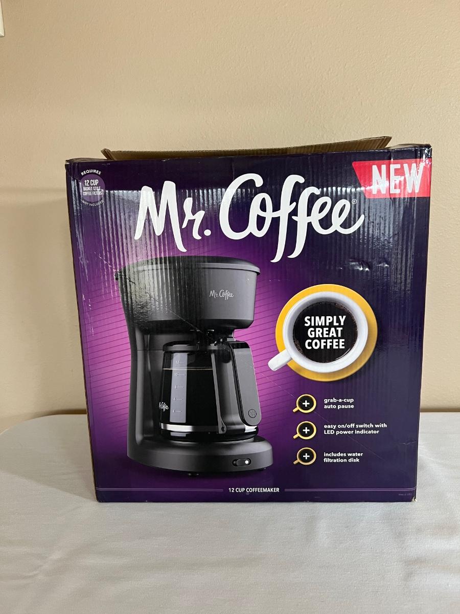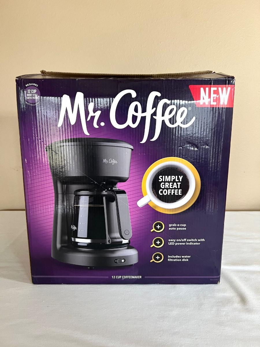 In original packaging, Mr. Coffee 12 cup coffee maker.