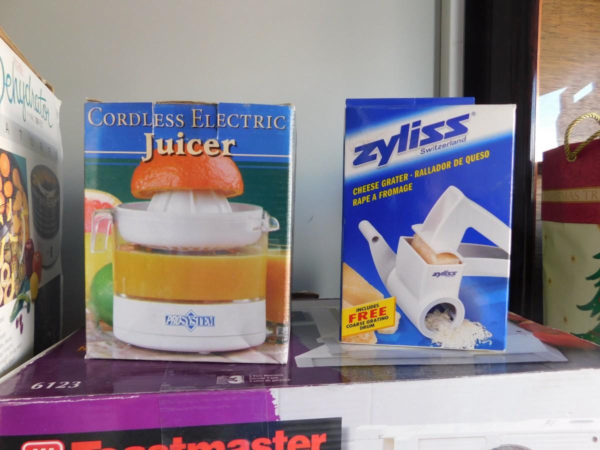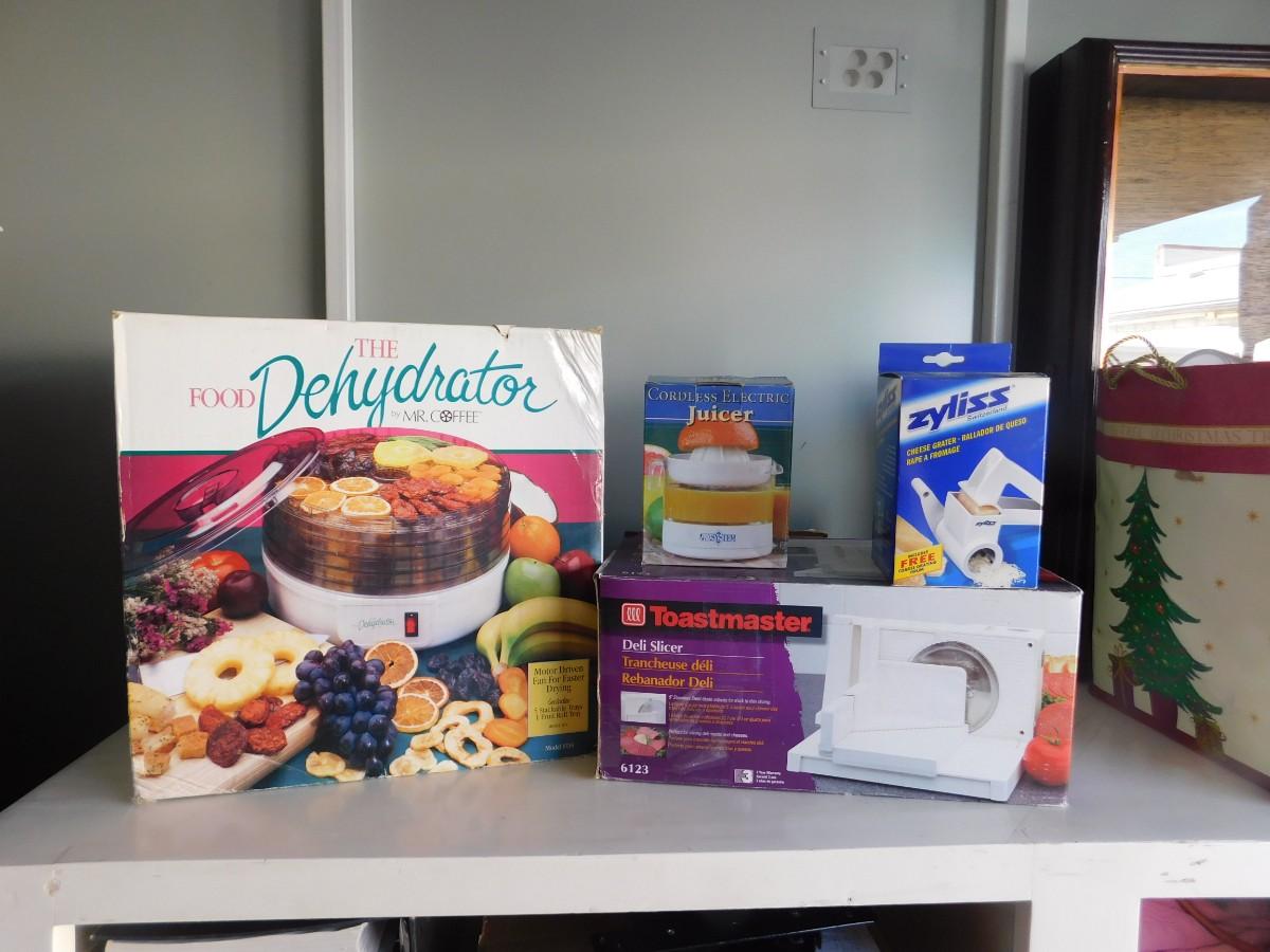 MR. COFFEE FOOD DEHYDRATOR, TOASTMASTER DELI SLICER, ZYLISS CHEESE GRATER, AND CORDLESS JUICER