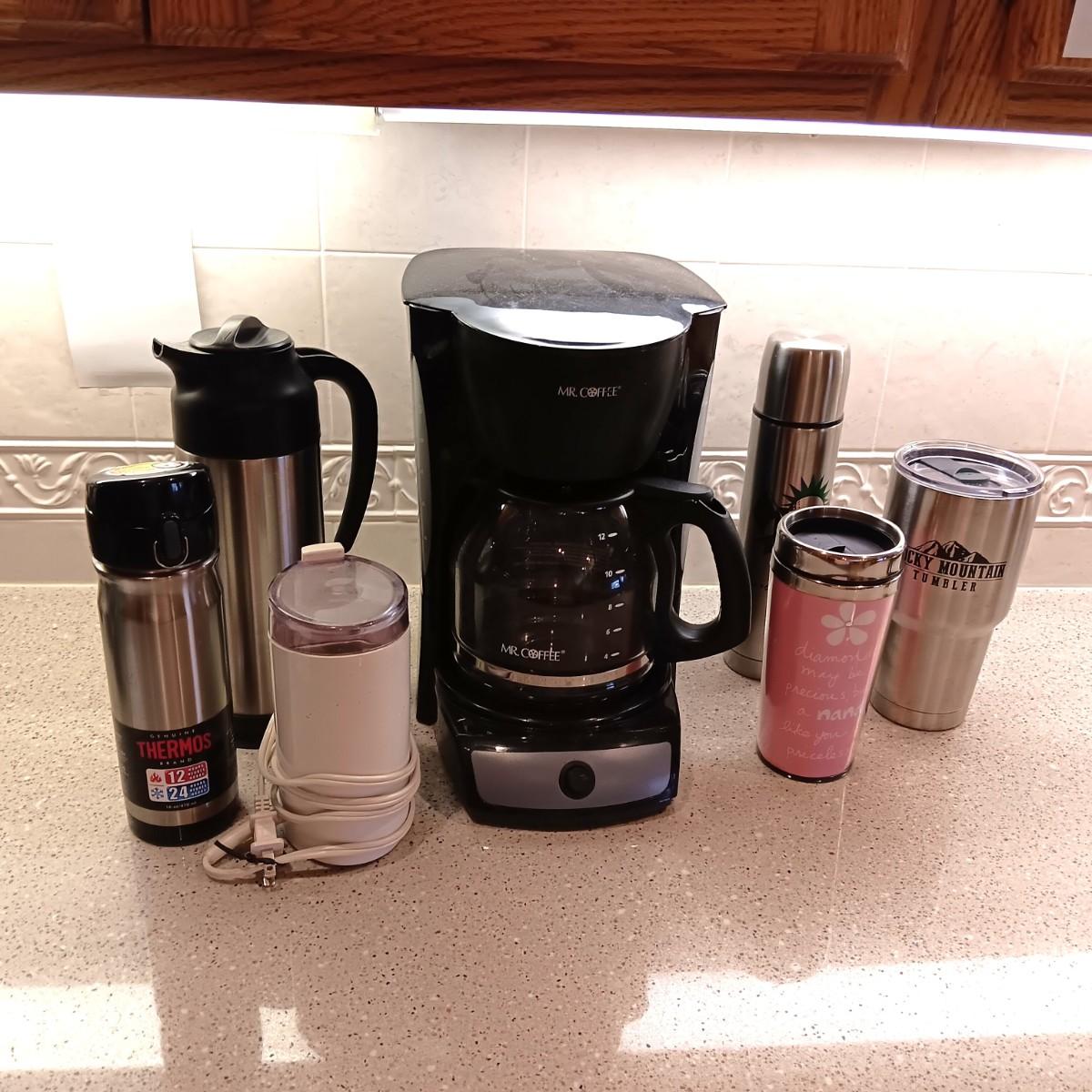 MR COFFEE BREWER, TRAVEL CUPS, BEAN GRINDER AND THERMOSES