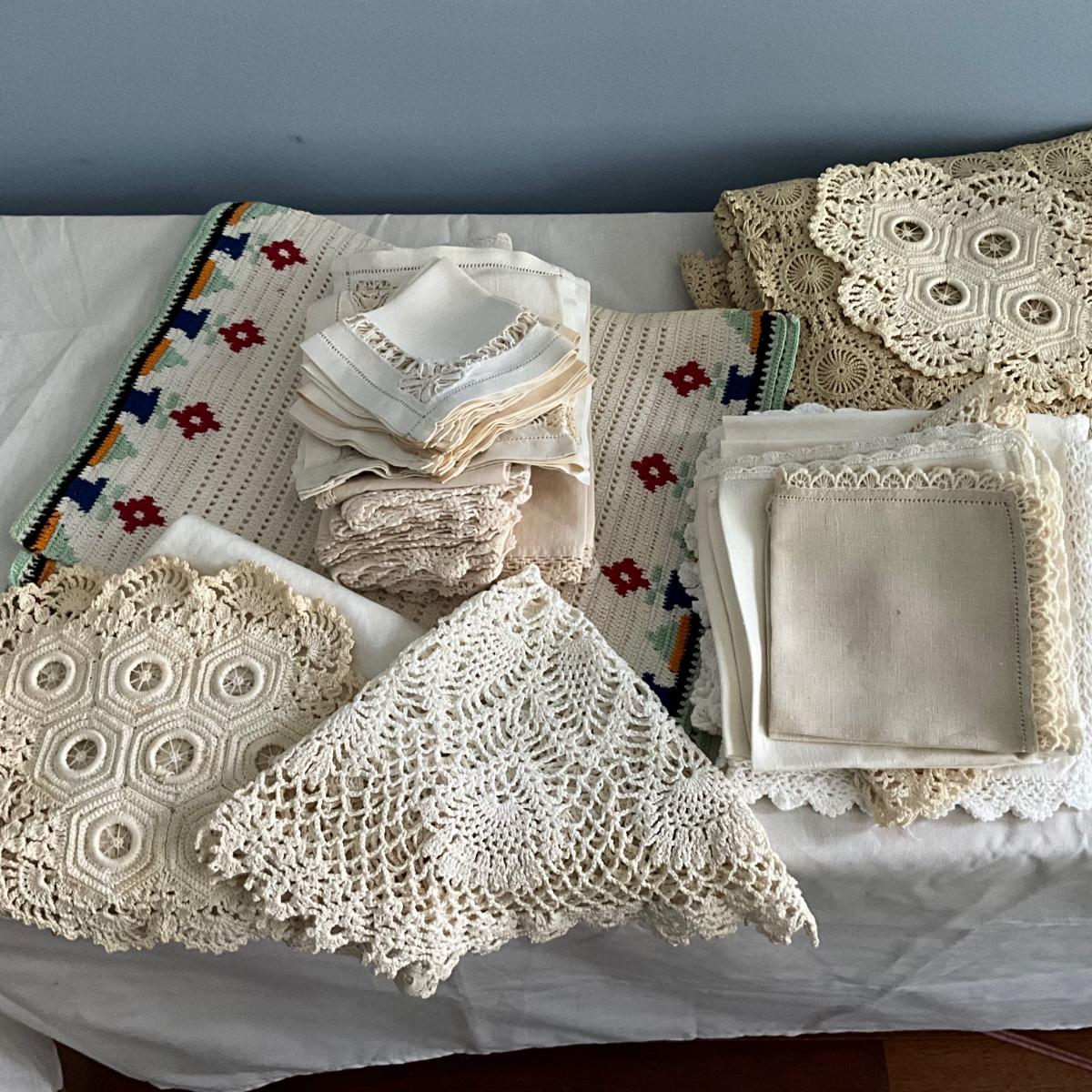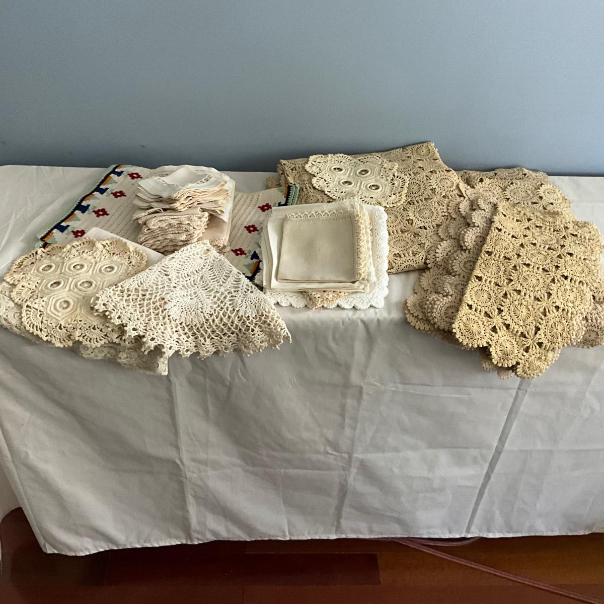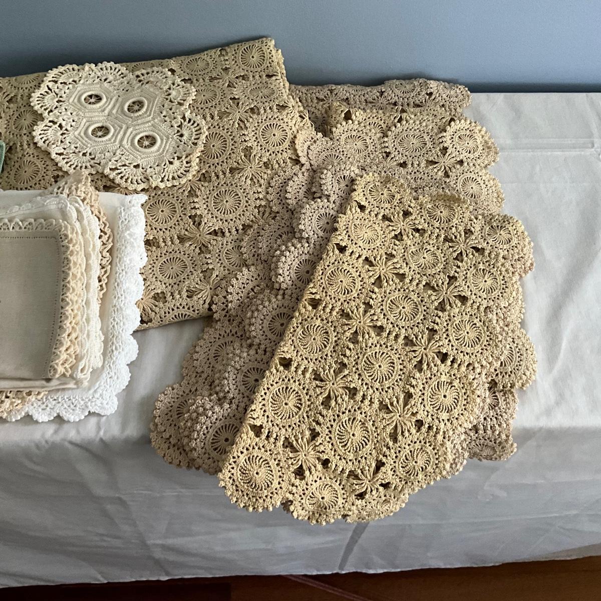 MR1489 Antique Hand Crochet Ecru Tablecloth / Linens