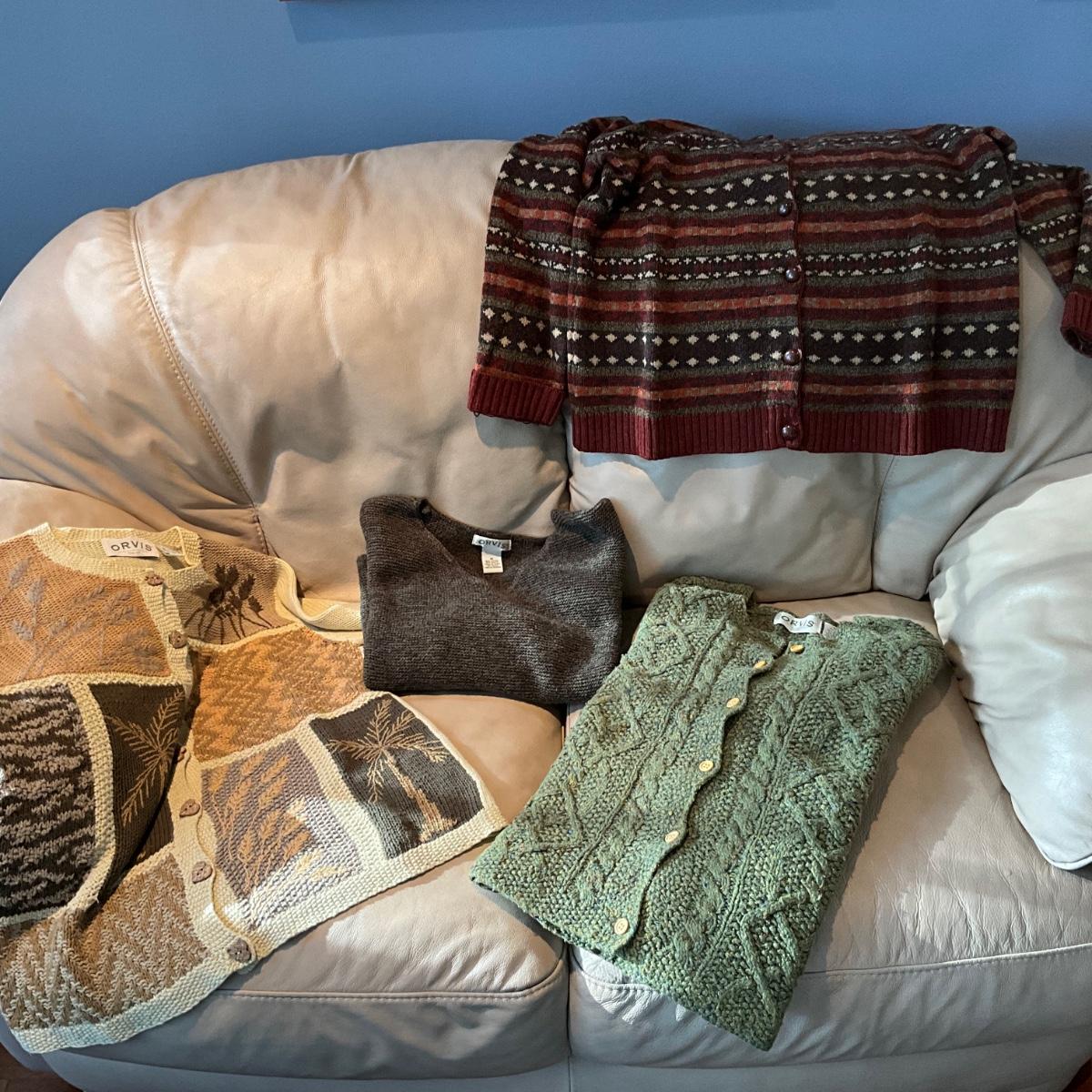 MR1698 Lot of 4 Ladies Wool Orvis Sweaters Sz Small Med.