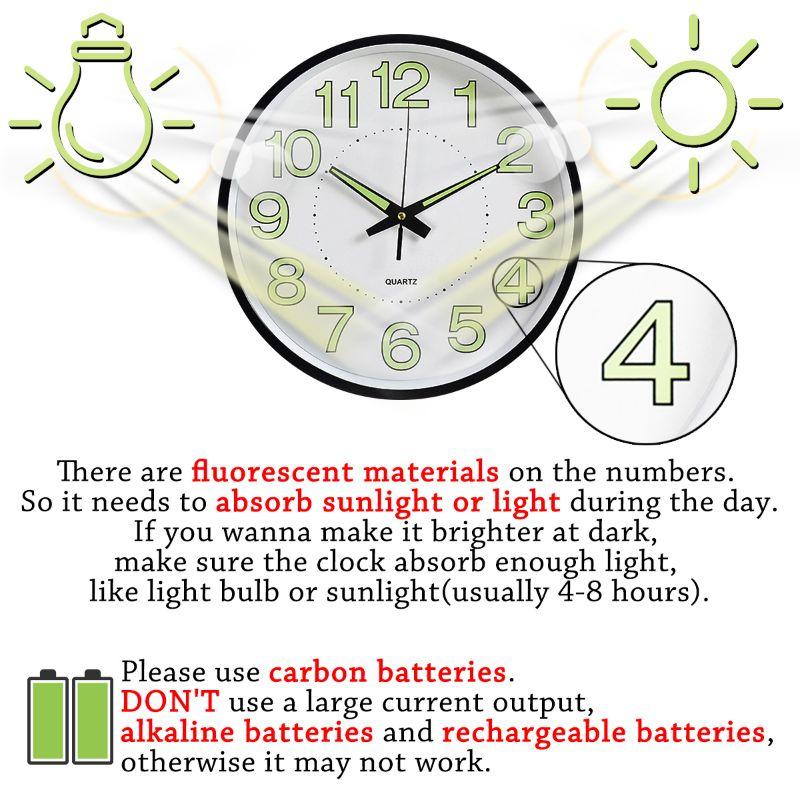 Mrosaa 12" Wall Clock Glow In The Dark - New
