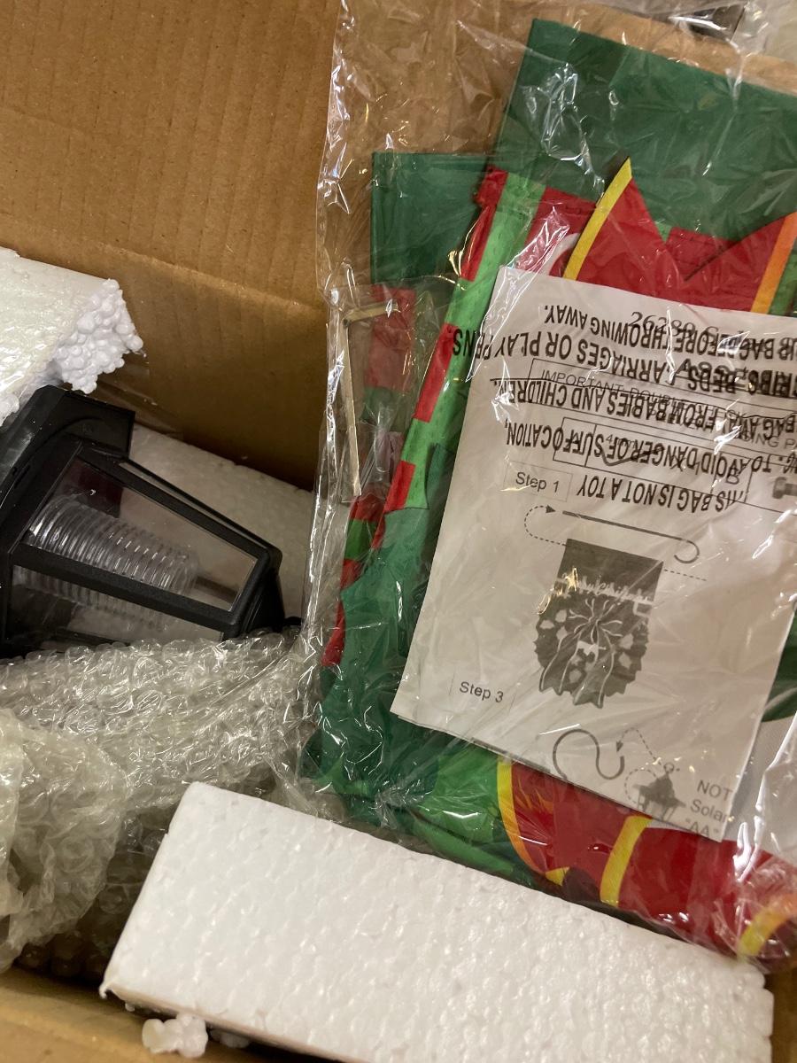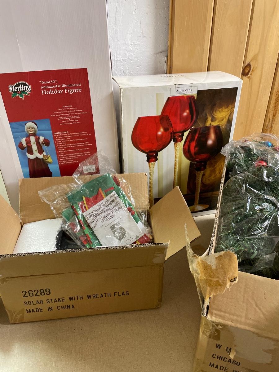 Mrs Claus, candle holders, wall tree, solar stake with flag
