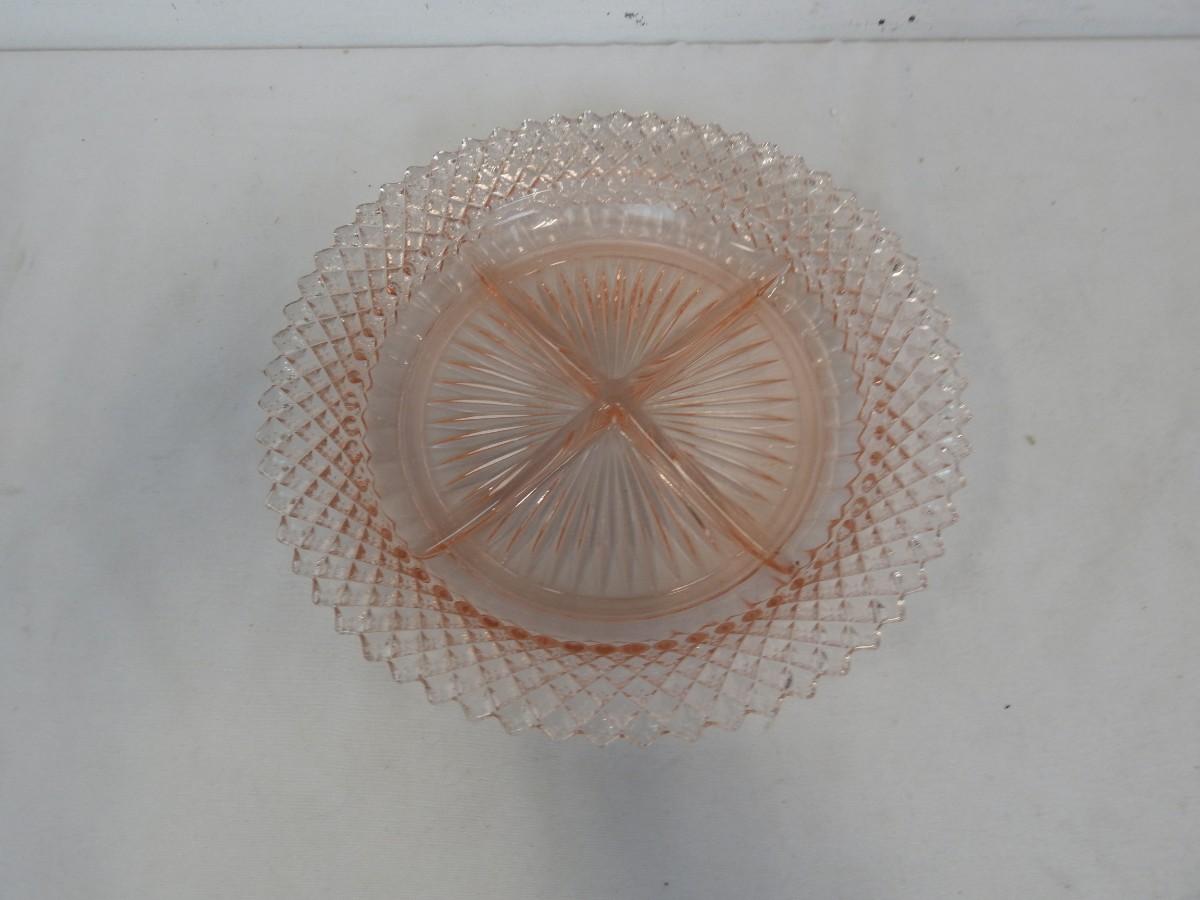 Miss America Relish Plate Divided Dish by ANchor Hocking 1940's Vintage Pink-Depression Glass 8 3/4"