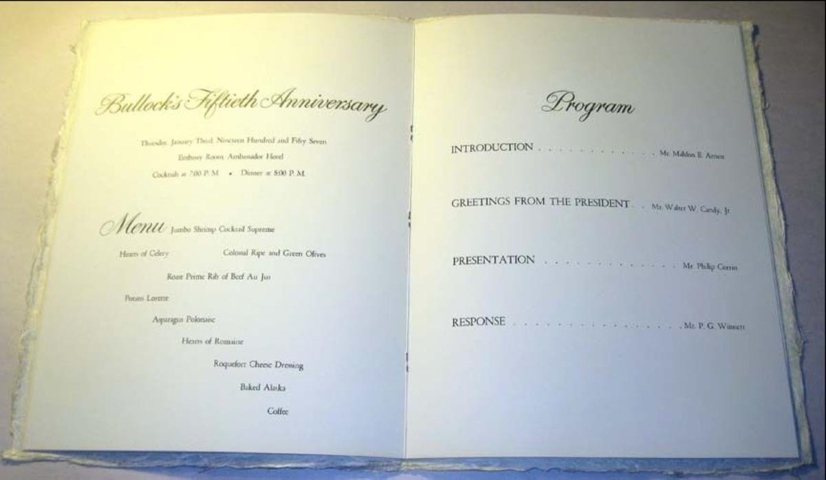 MS Bullock's Department Store 50th Annv. 1957 Banquet Program Ambassador Steuben