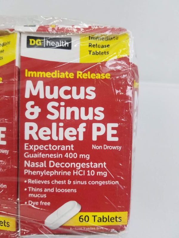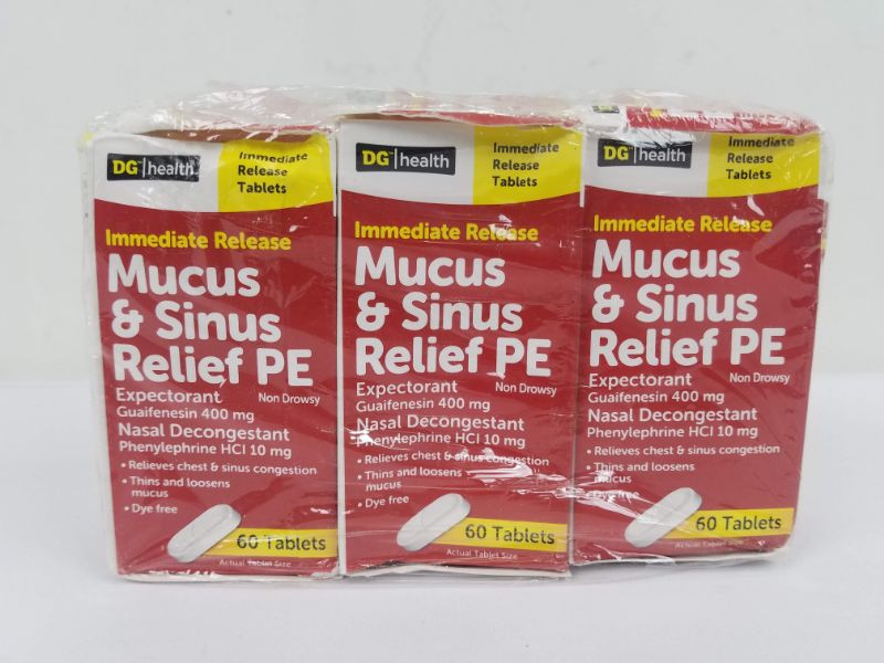 DG Health Mucus & Sinus Relief PE, 3 Bottles of 60 tablets each, expire 03/21, sealed - New