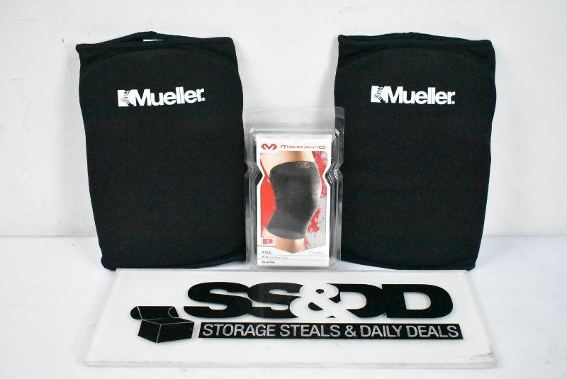 Mueller Multi-Sport Knee Pads, OSFM, Open Package & McDavid MD510 Knee Sleeve/Elastic, Adult XL, Black - New