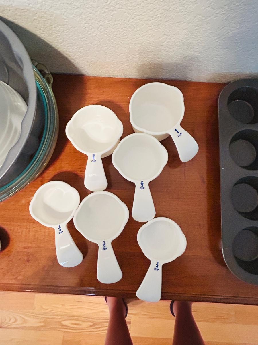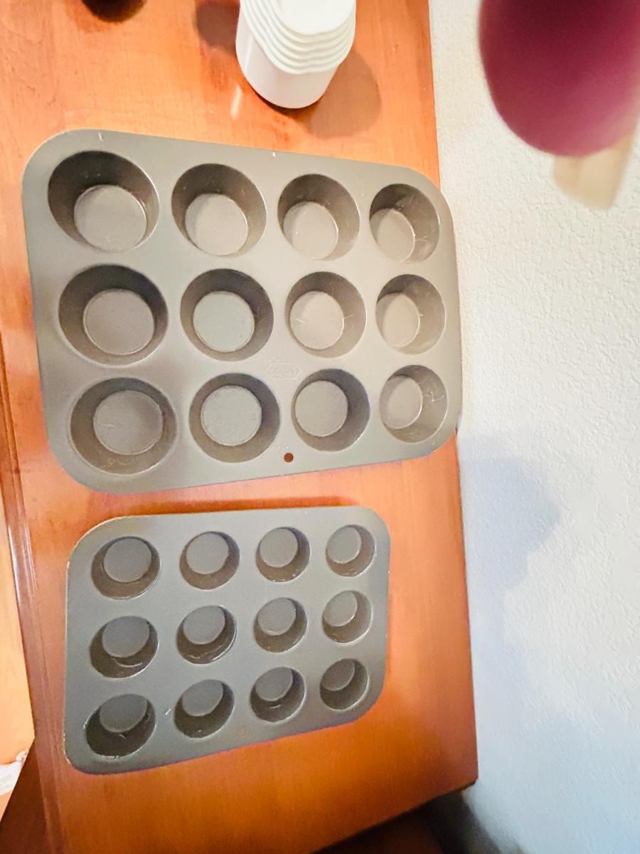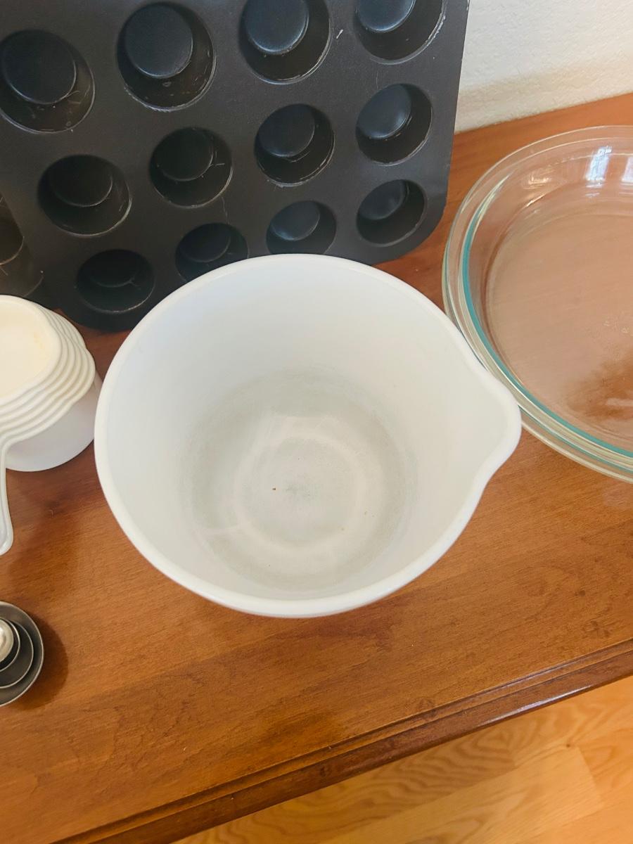 MUFFIN PANS, MIXING BOWL, BUNT PAN, CAKE PANS, TUPPERWARE MEASURING CUPS