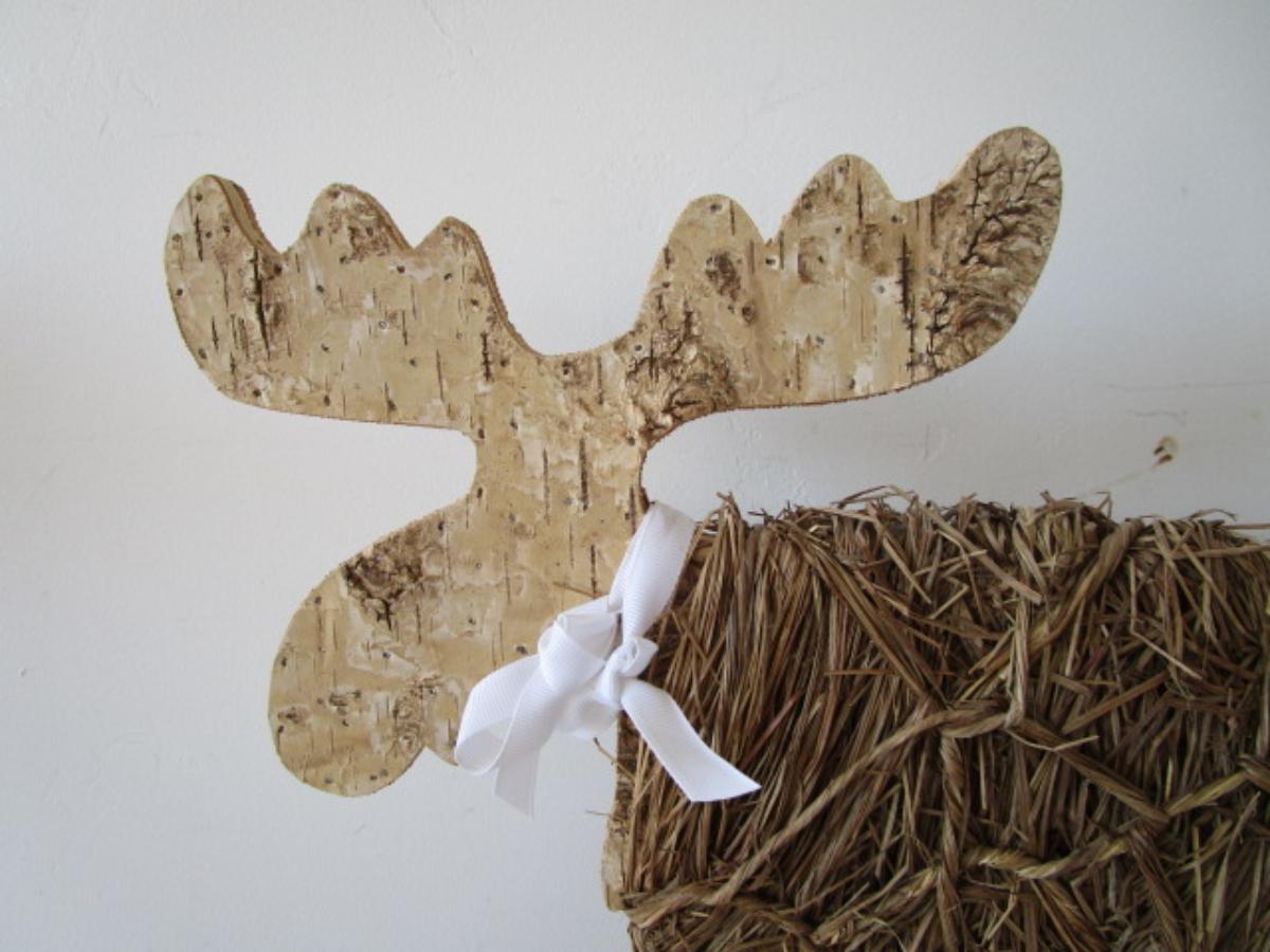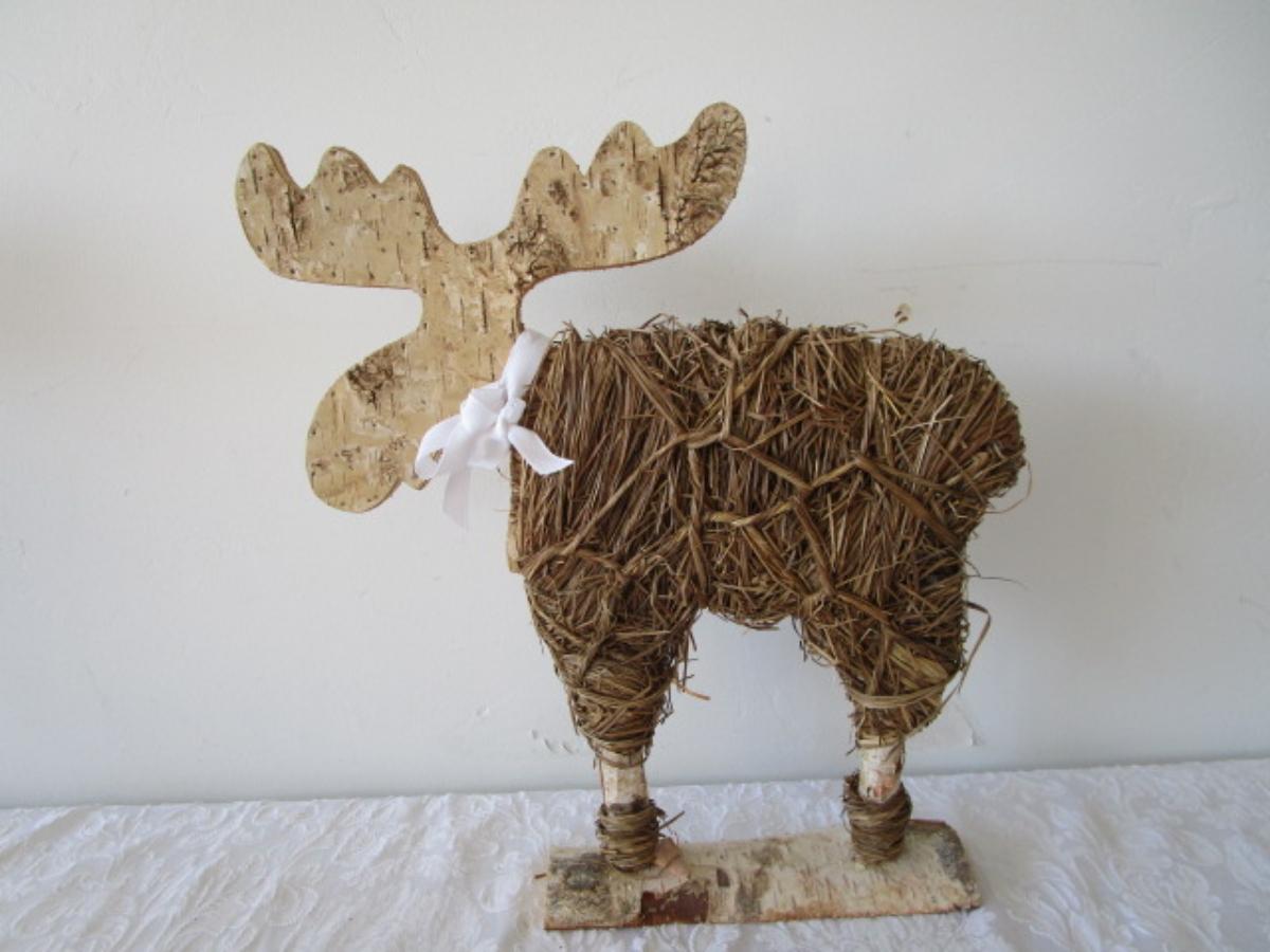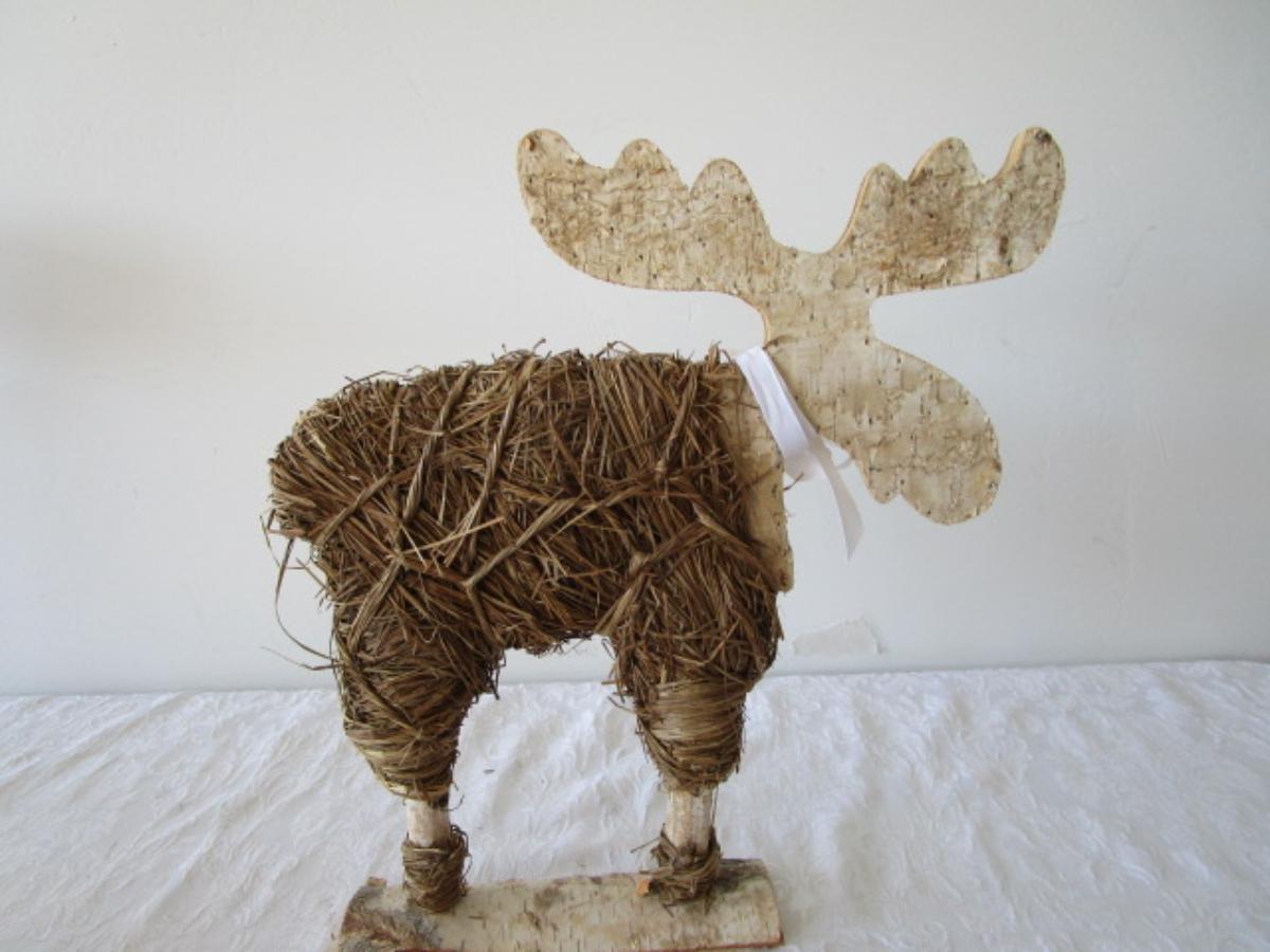 Pottery mug, glazed candle holder, Moose decoration 15-1/2" tall x 15-1/2" long, 2 metal cut-out candle holders, moose door knocker