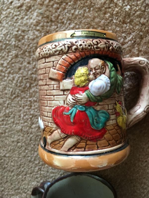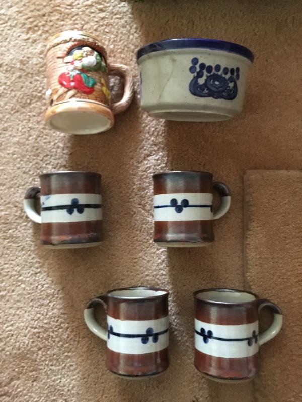 Pottery Mugs Takahashi hand painted and Vintage Beer Stein