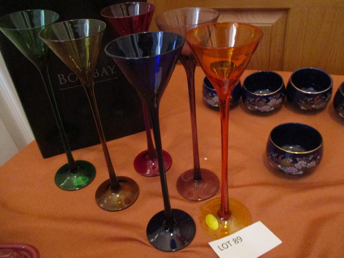 Silverplated Marriage cup. Mult-color glass stemware, Japanese bowl set