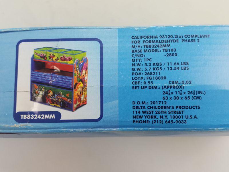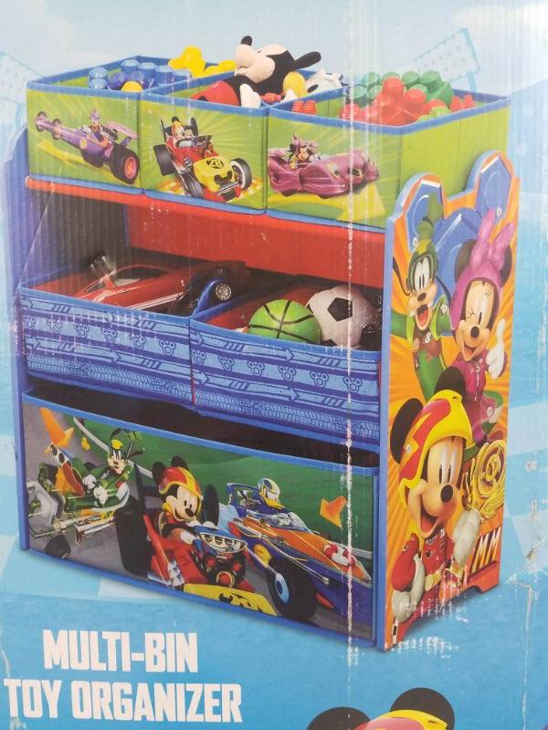 Multi Bin Toy Organizer Ages 3-6. Mickey & Roadster Racers. Open Box - Like New
