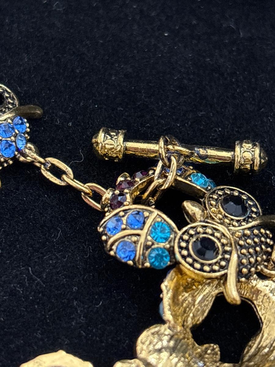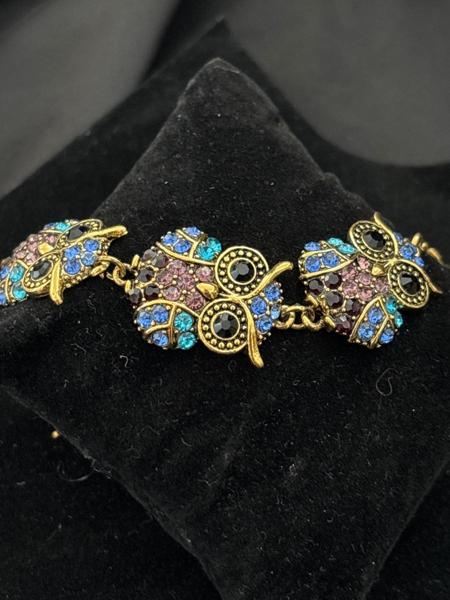 Multi Color Austrian Crystal Owl Bracelet In Goldtone (6.50 Inch - 7.50 Inch )
