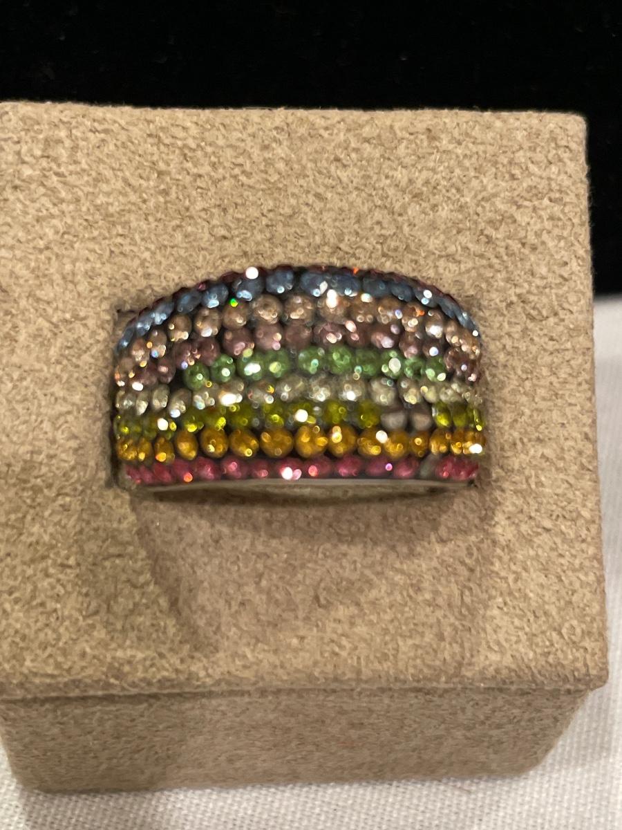 Size 8 multi color and is missing some stones