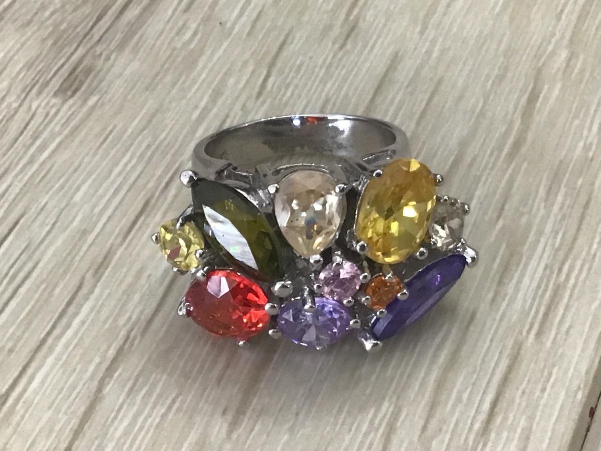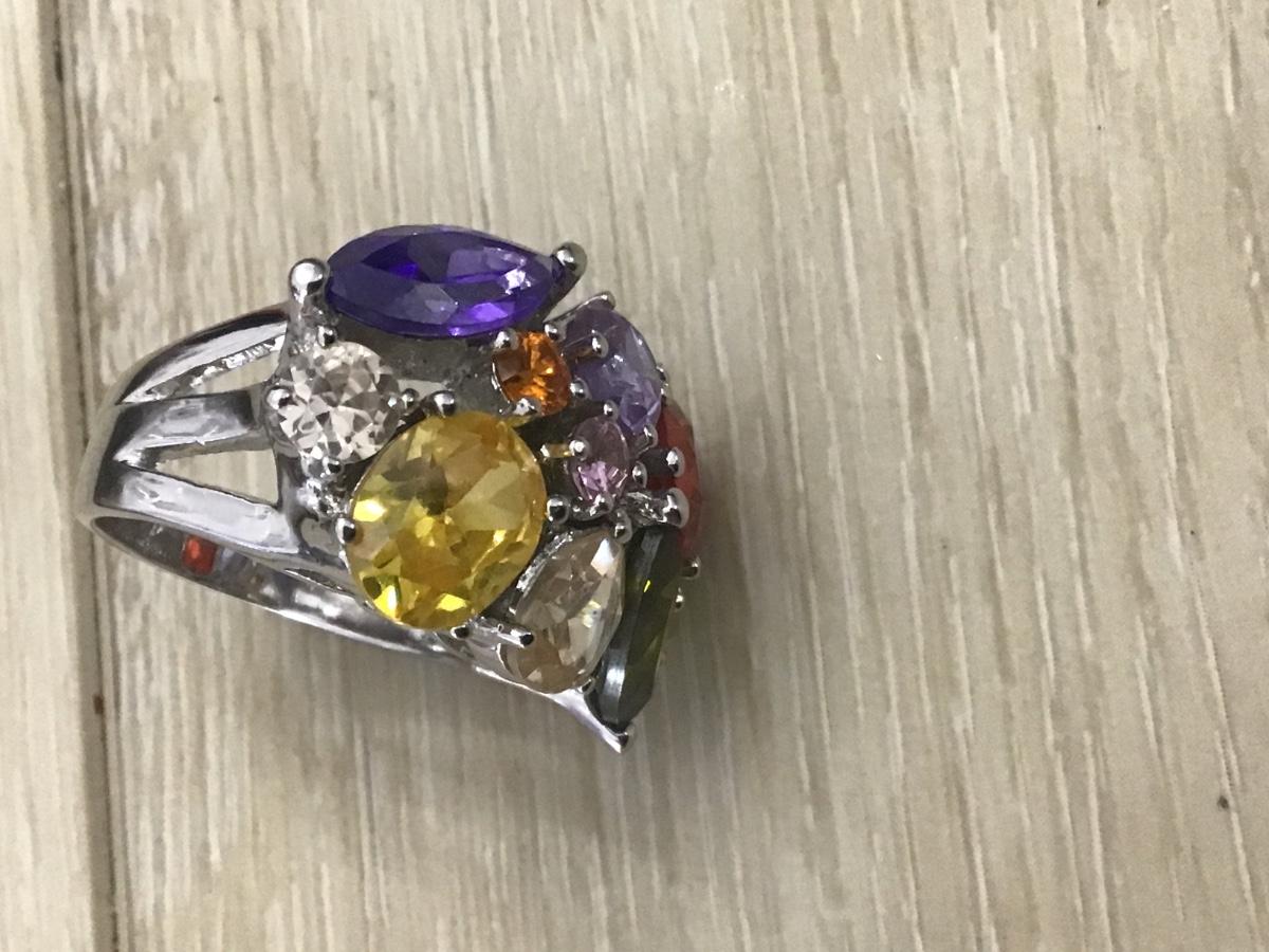 Multi Color Ring Sterling Silver Size Large Statement 925