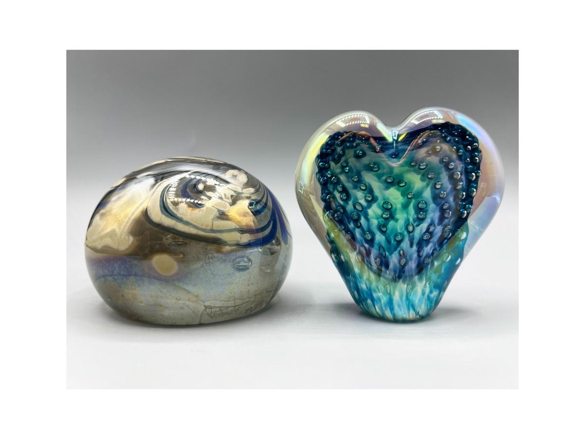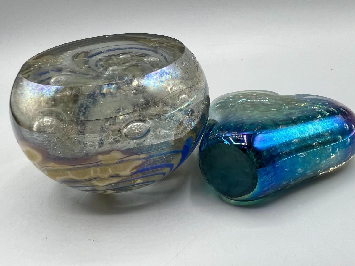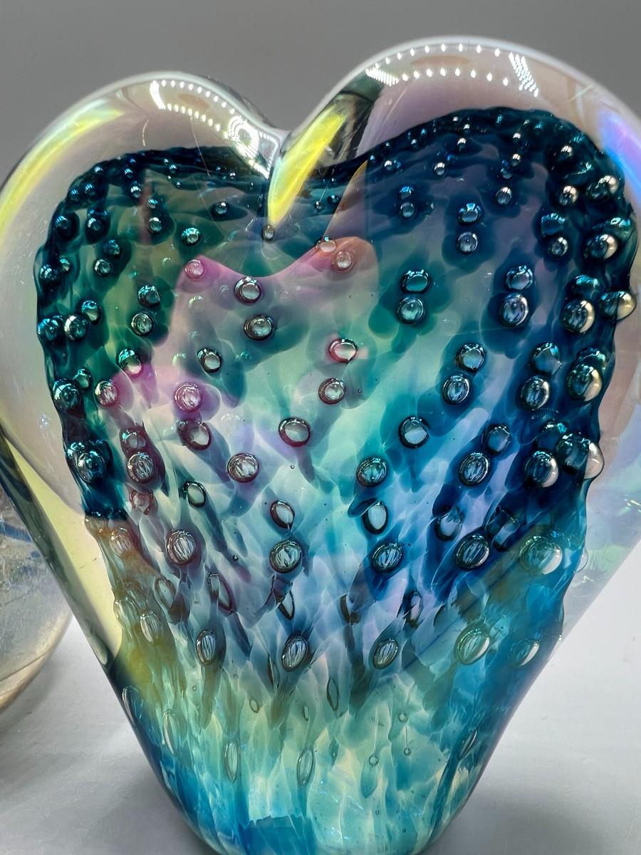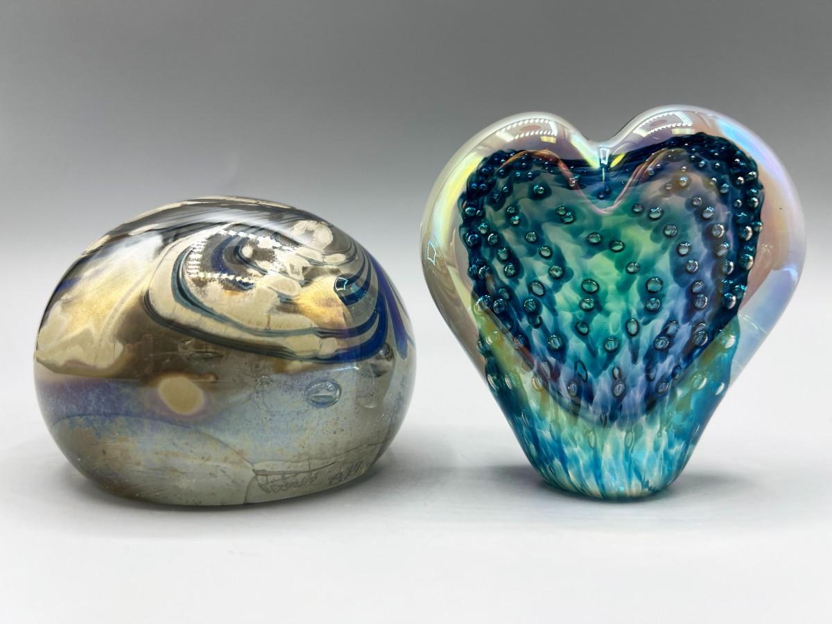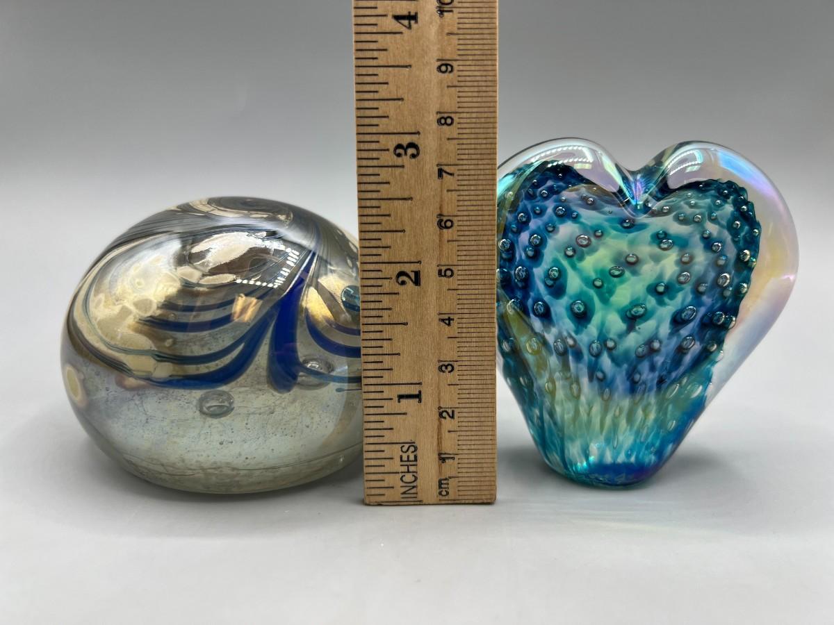 Multi Colored Bubble Heart Shaped & Round Displayable Glass Paperweight Sculptures