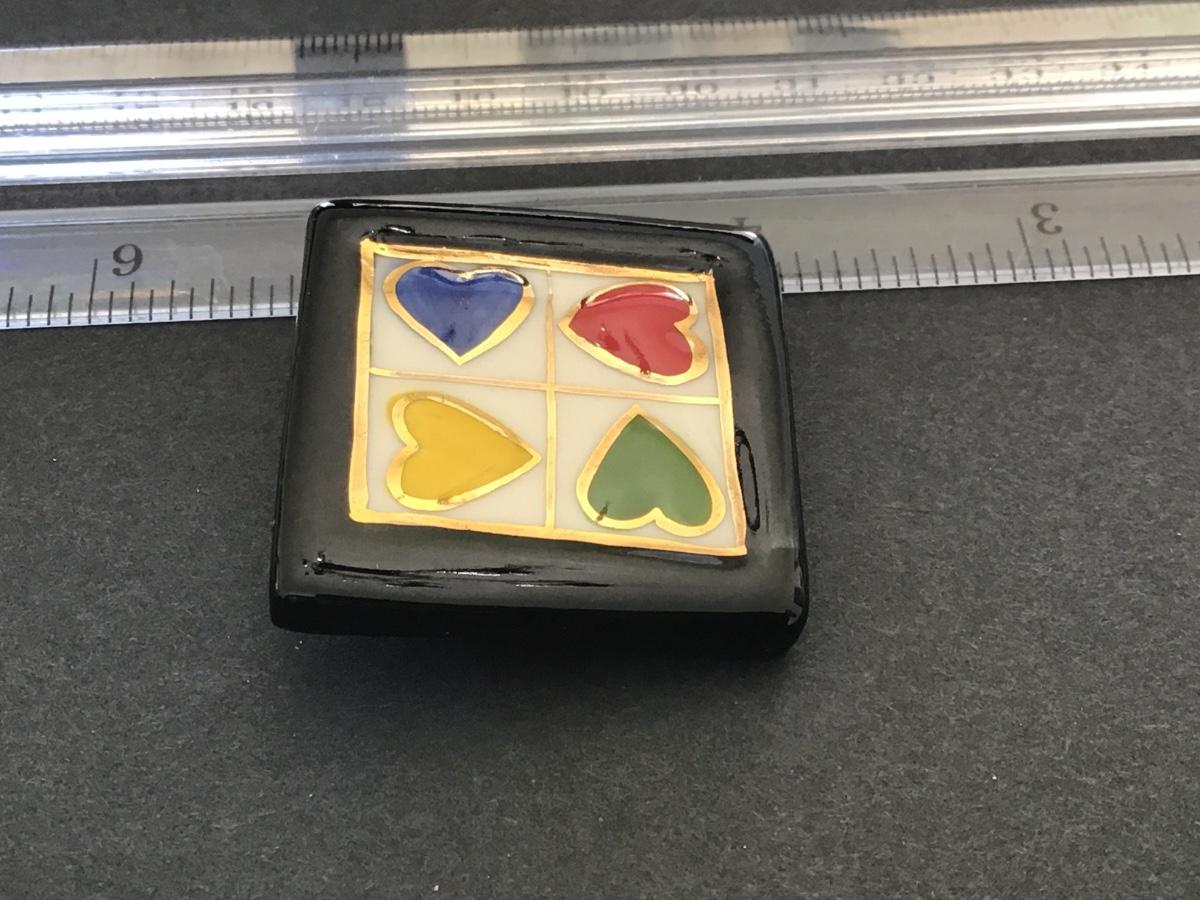 Multi Colored Heart Gold Embellishment Ceramic Hand crafted Brooch
