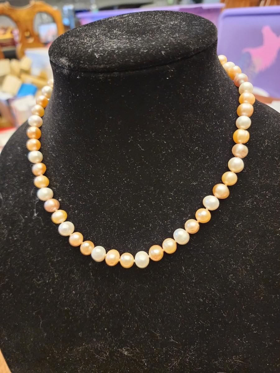 Multi colored pearl strand 16 inches with white stud earrings.