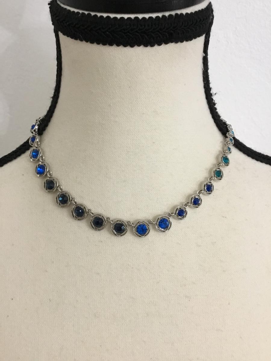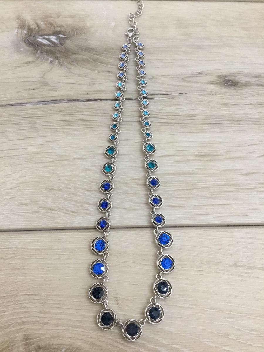 Multi colored, rhinestone, silver tone, fashion, statement, necklace