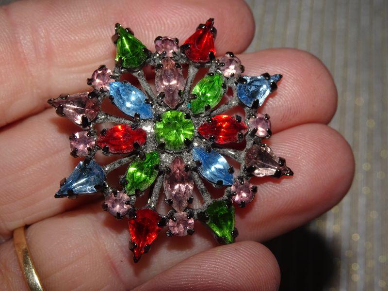 Multi Colored Round Rhinestone Brooch