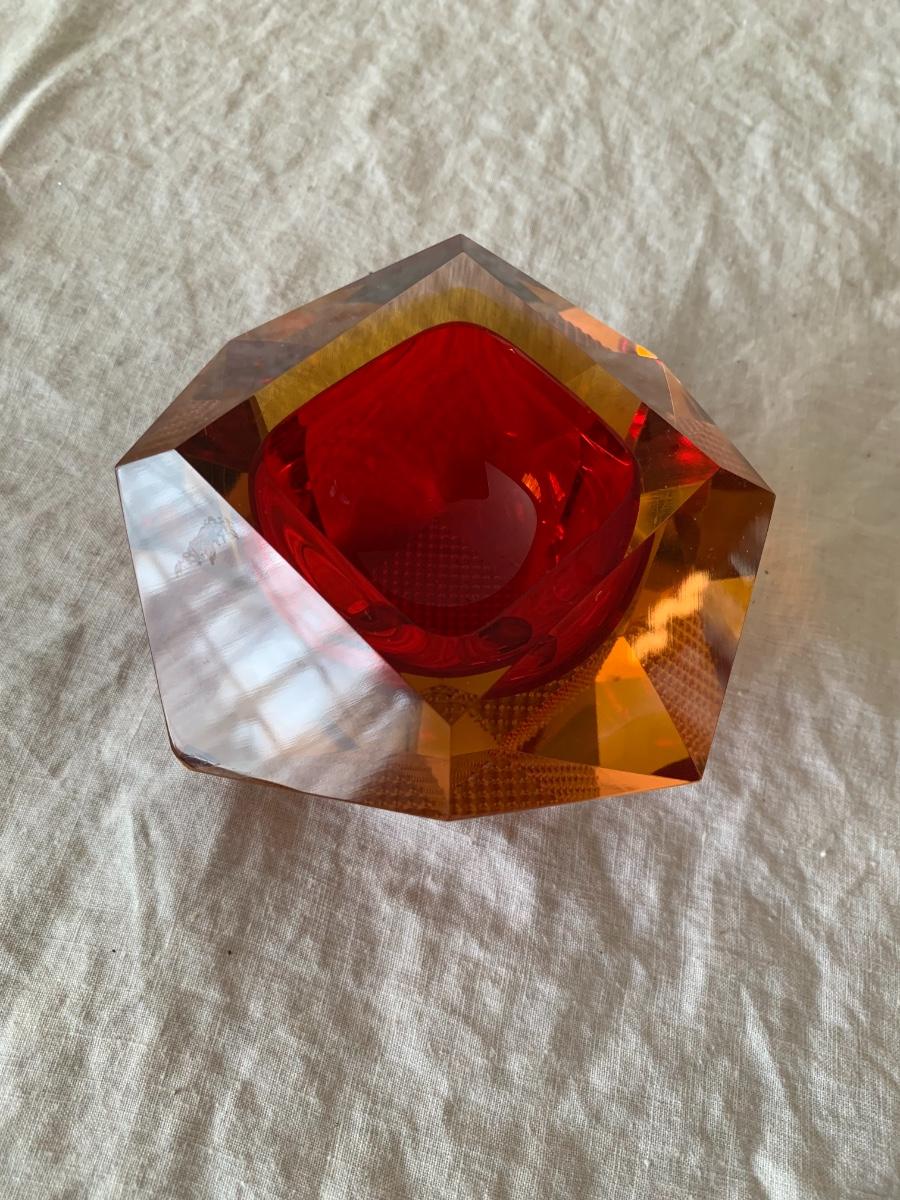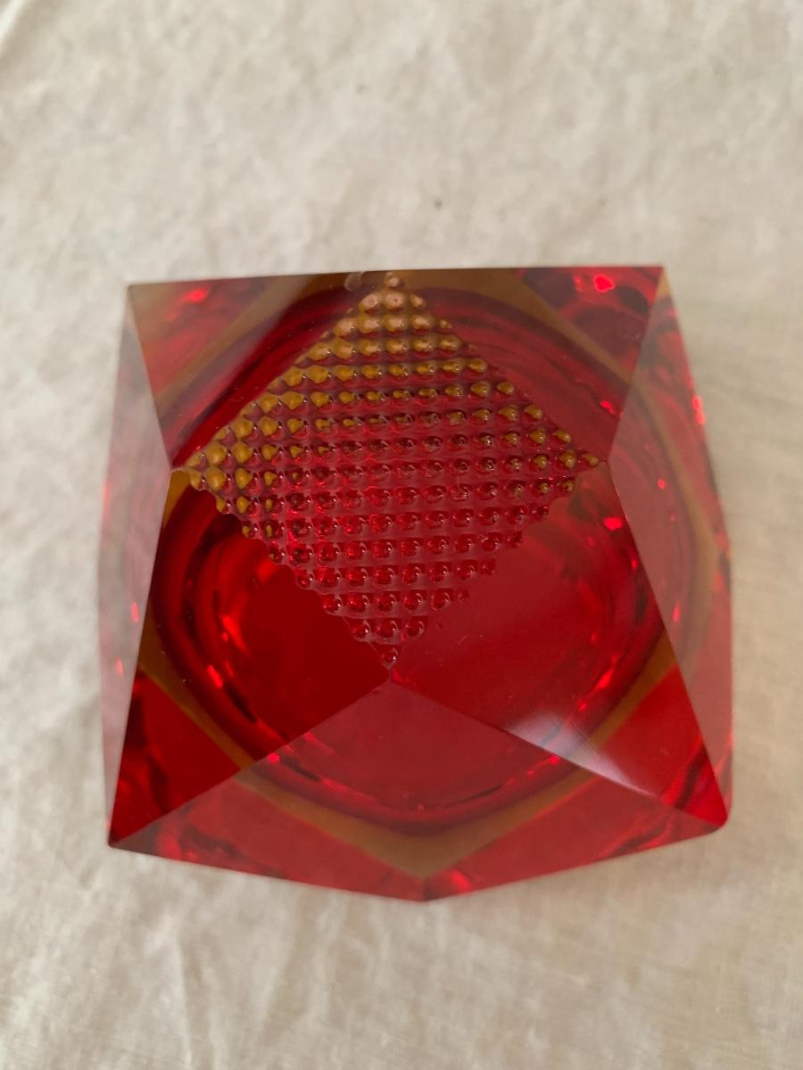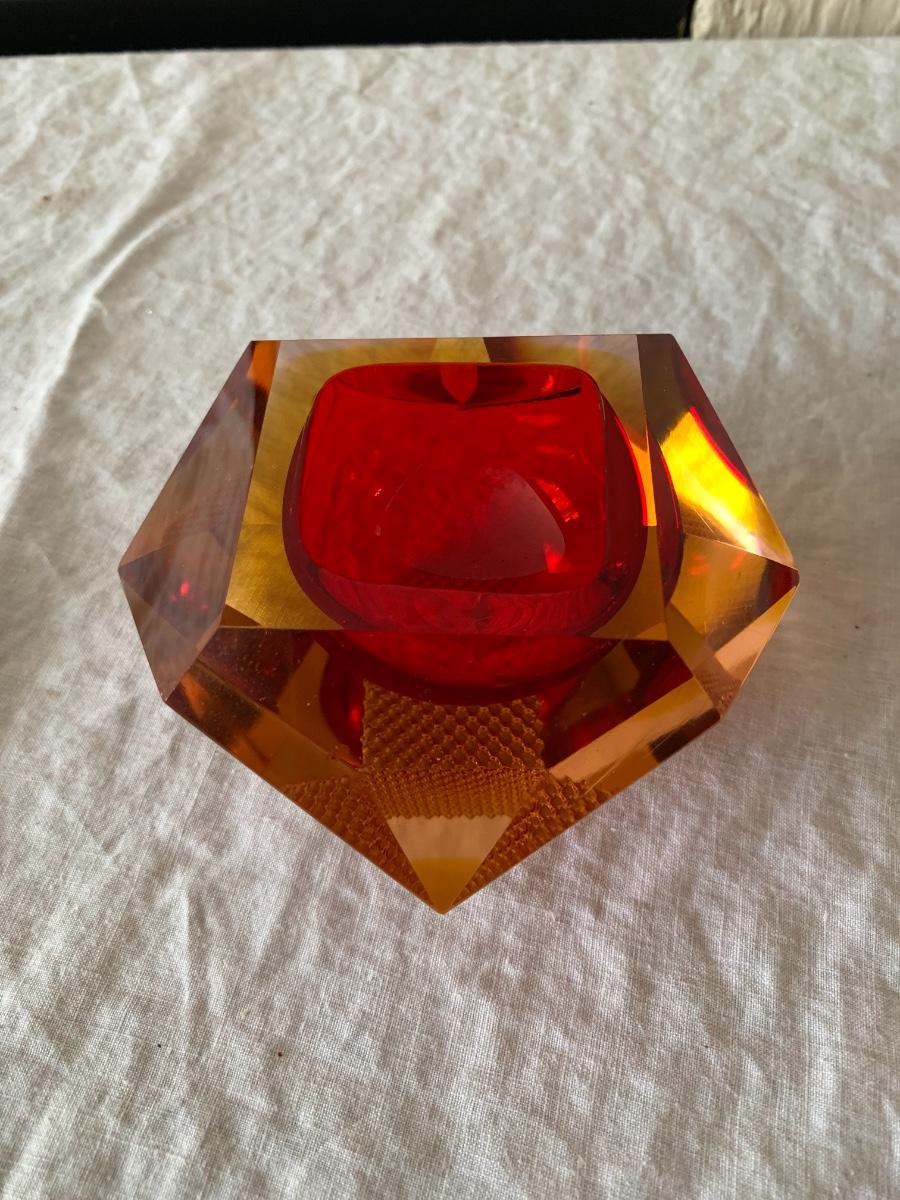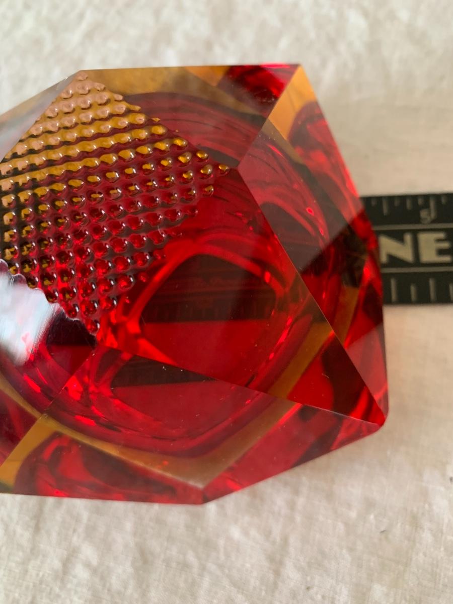 Small murano (?) unsigned with no label but done in the fashion of, glass multi faceted , with textrued bottom and very tiny chip in inconspicuous place