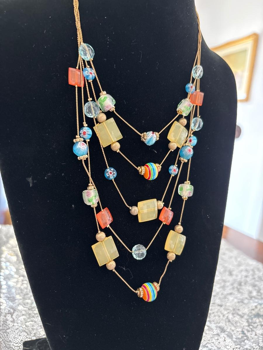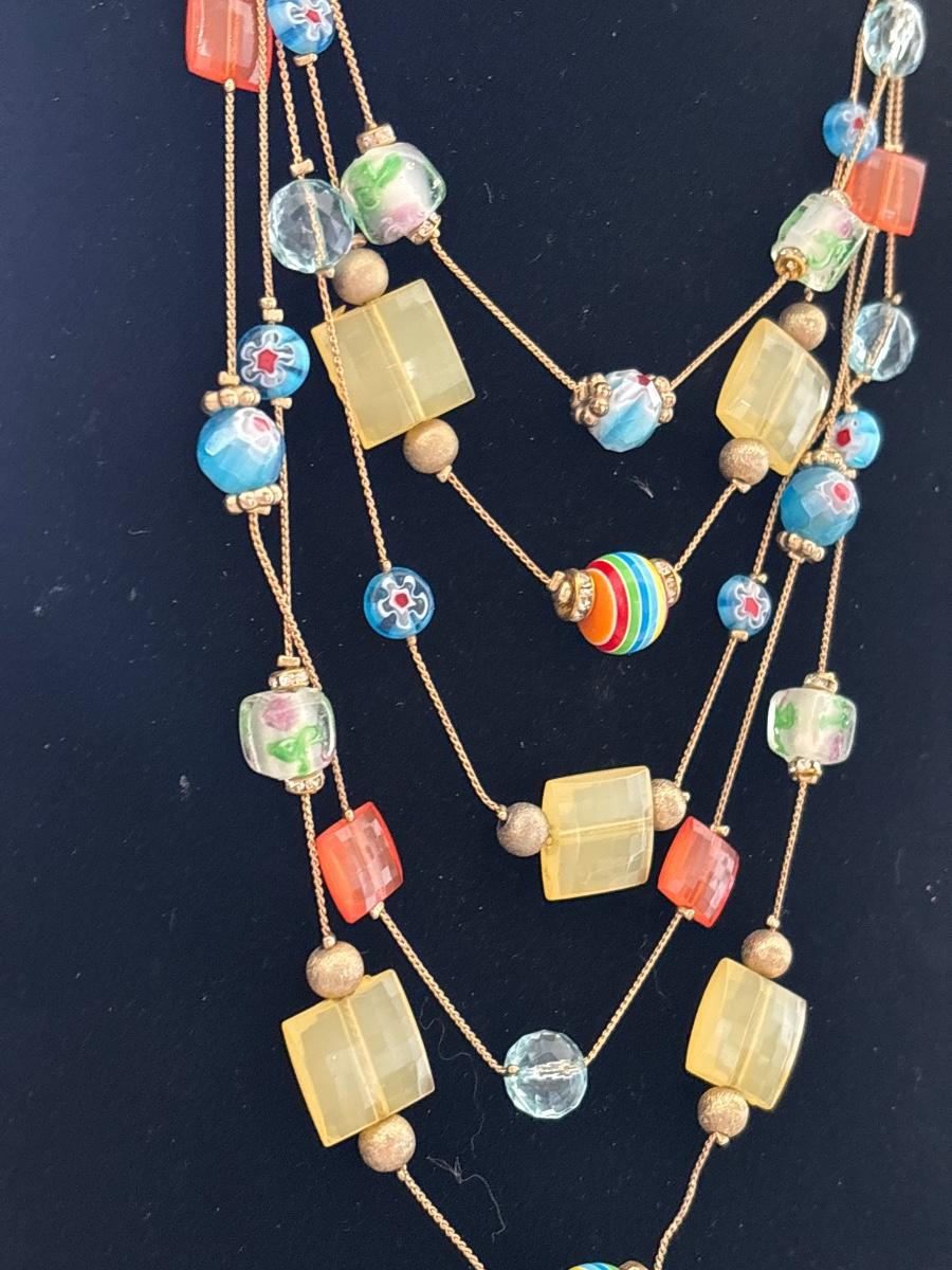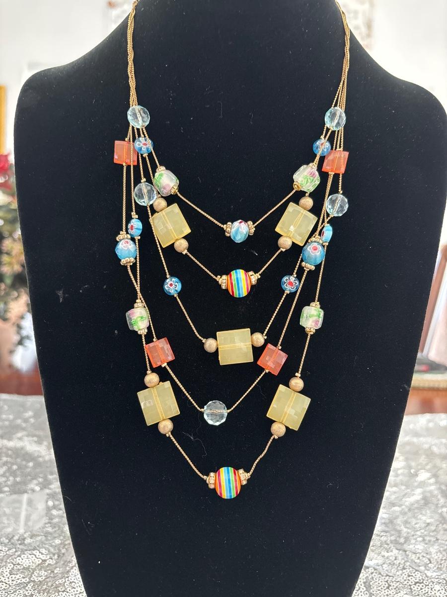Multi layered plastic bead And glass bead necklace