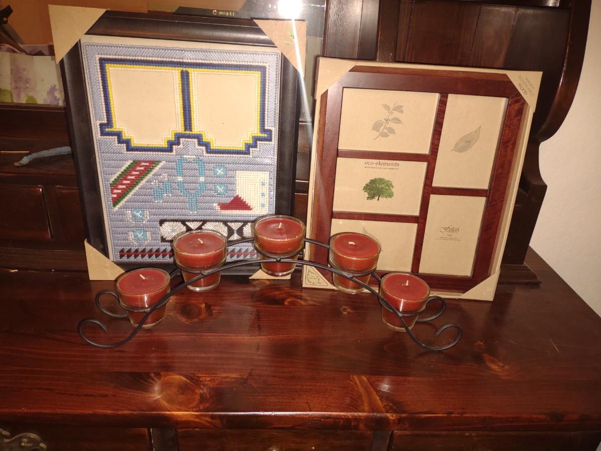 MULTI PICTURE FRAMES AND VOTIVE CANDLE TABLE CENTERPIECE