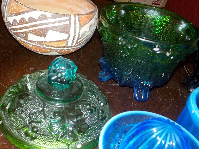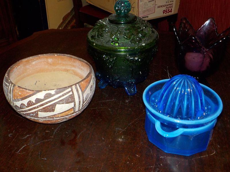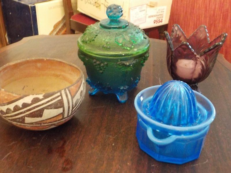 Multi special Glass dieplay Orange squeeze, candle holder, depression glass , Native american bowl.