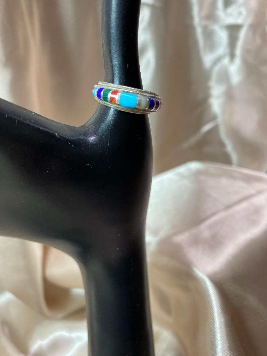 Multi Stone Inlaid Ring, Signed