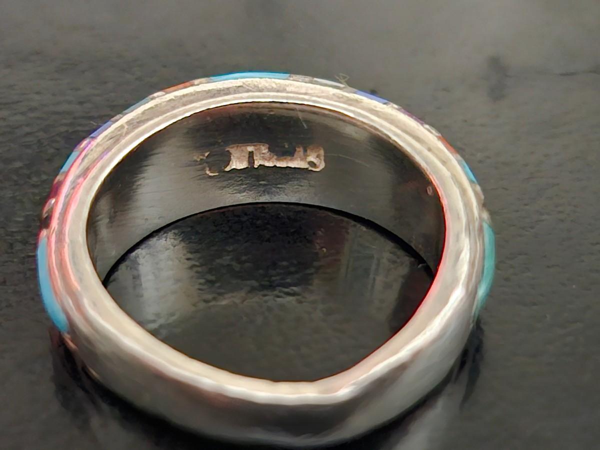 14 stones Inlaid in Sterling, 1 stone is chipped. It is signed, see photo. It is probably by Philander Begay, and Rare.