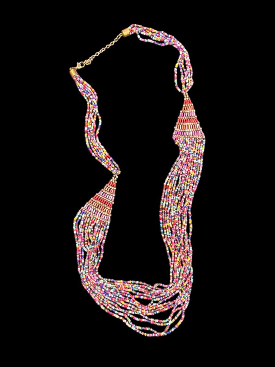 Multi Strand Multicolored seed bead necklace African Maasai or Bohemian Style