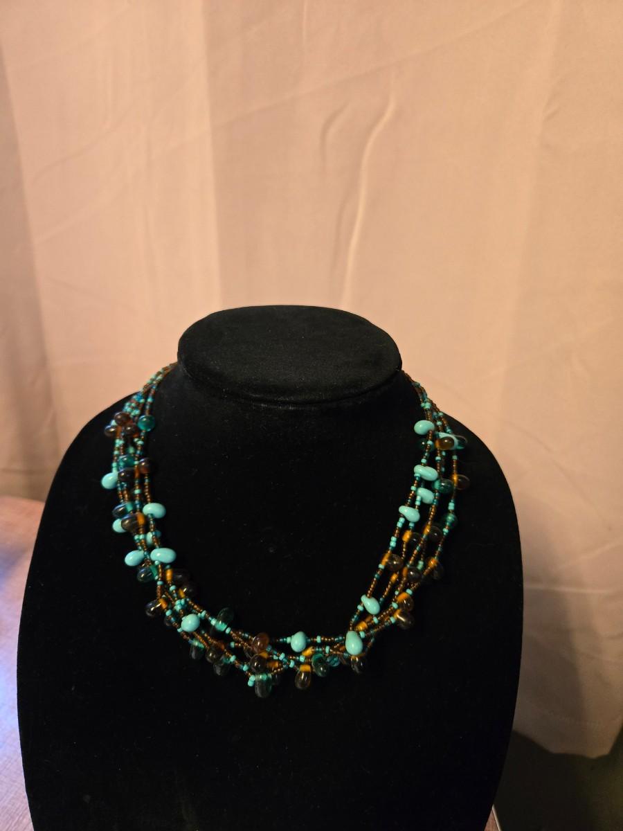 Multi Strand turquoise & brown beaded necklace