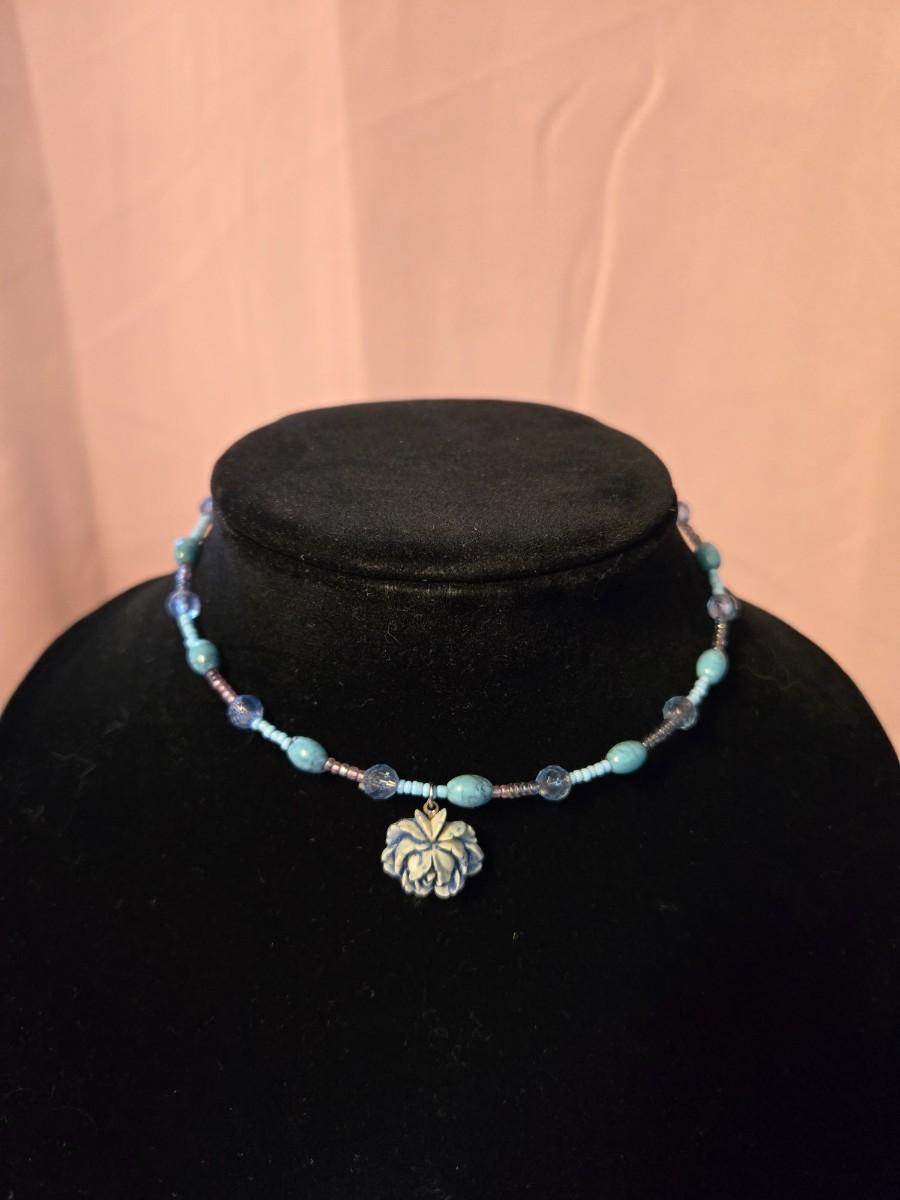 Wire choker turquoise/light blue with blue flower