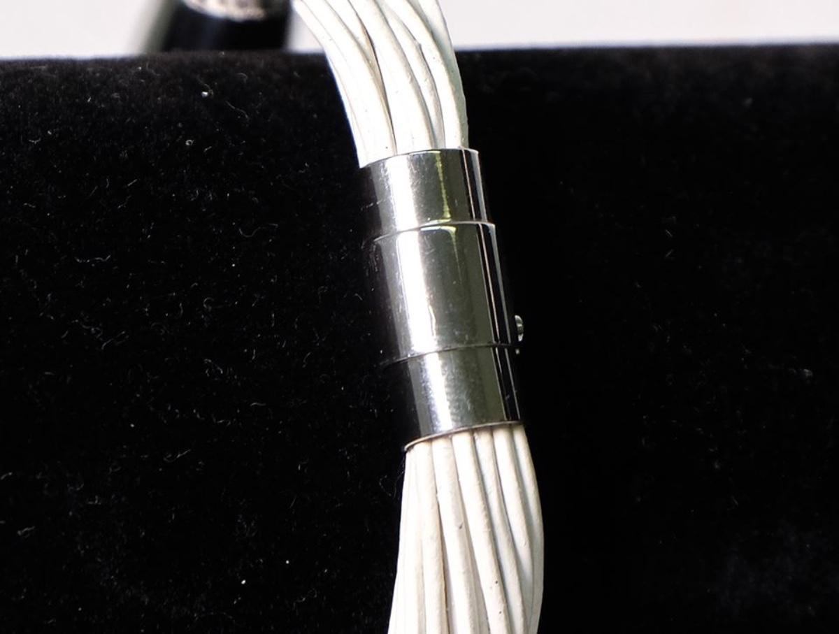 Stamped S. Stainless steel. Magnetic. Necklace measures approx. 17", Bracelet approx. 7.5". Accompanied by box.