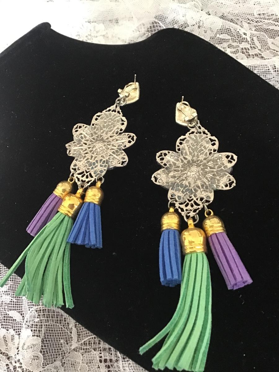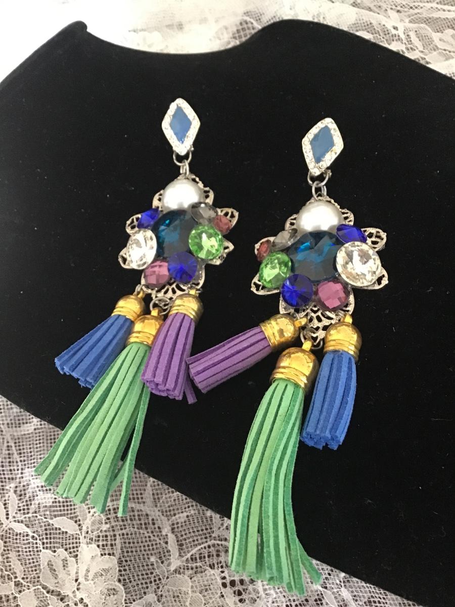 Multi-Color Crystal and Fabric Flower Fun Fashion Chandelier Earrings