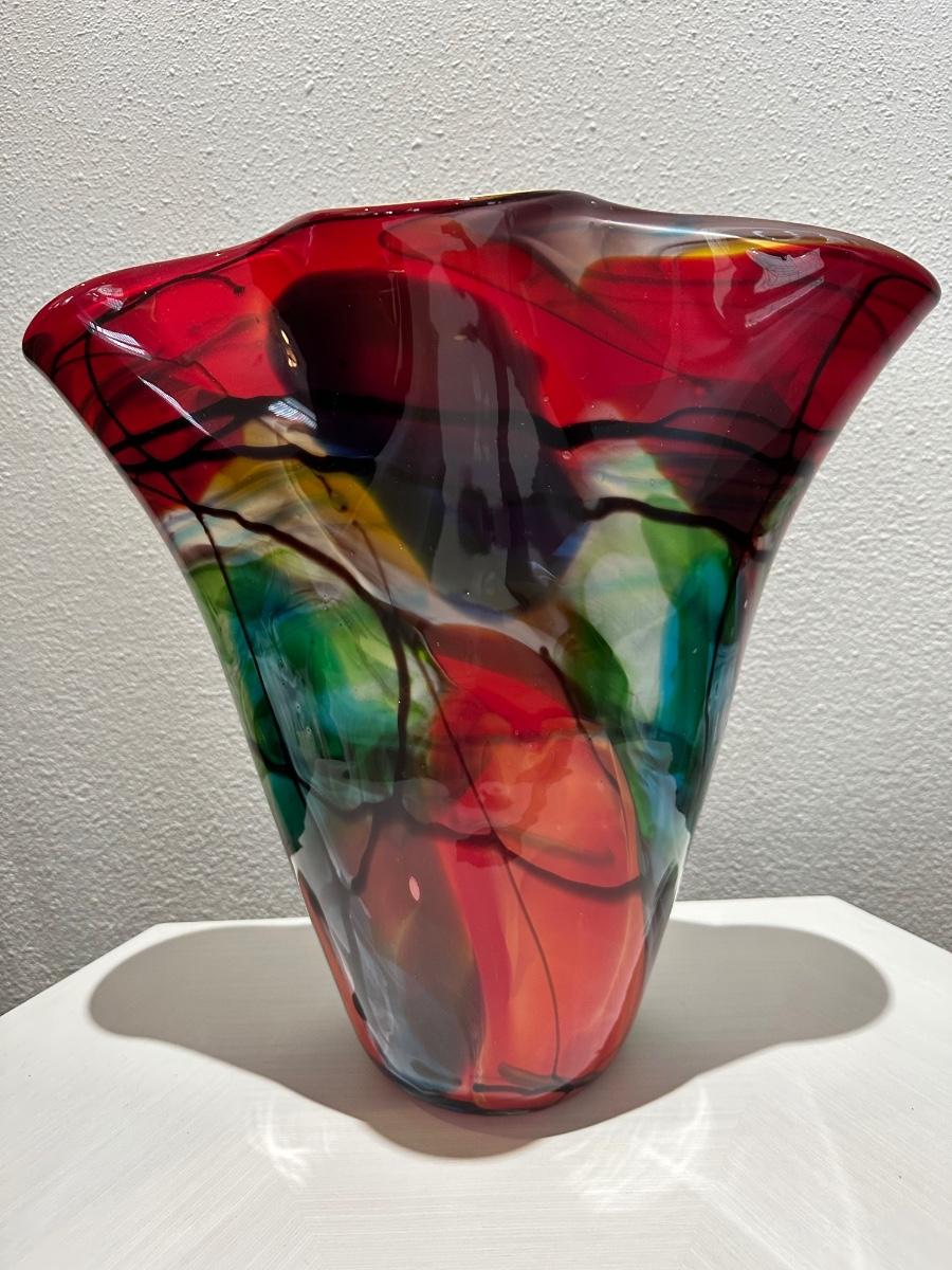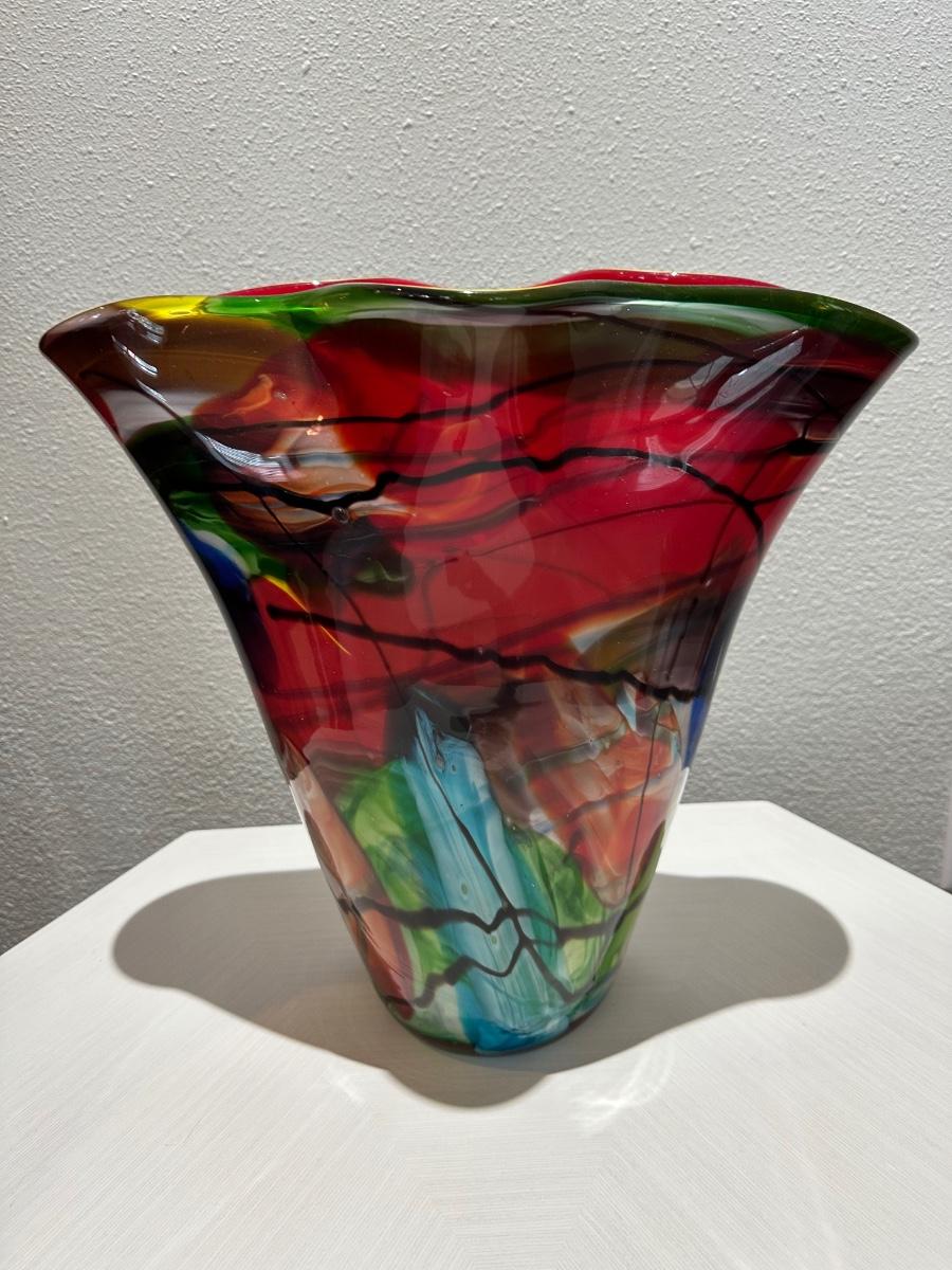 Multicolor Flared Art Glass Vase