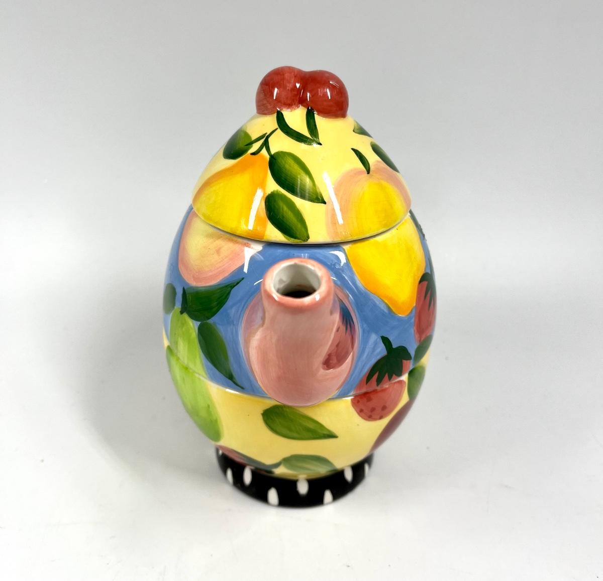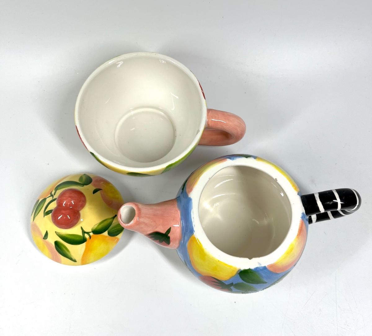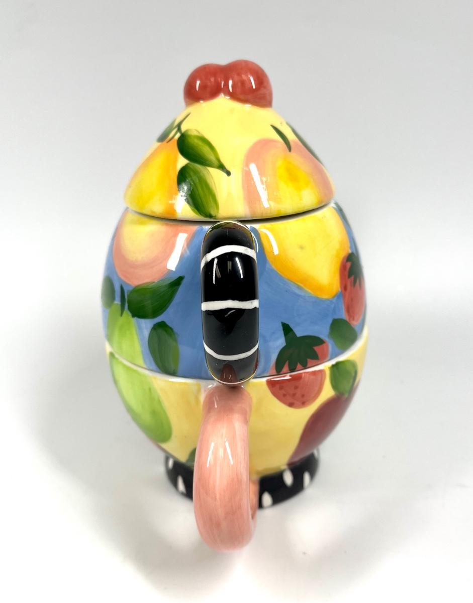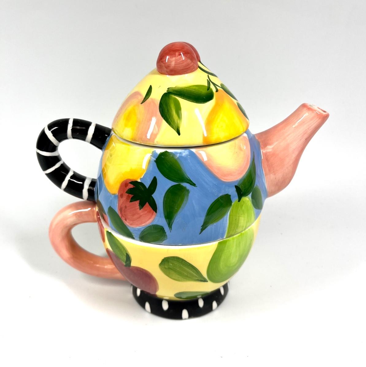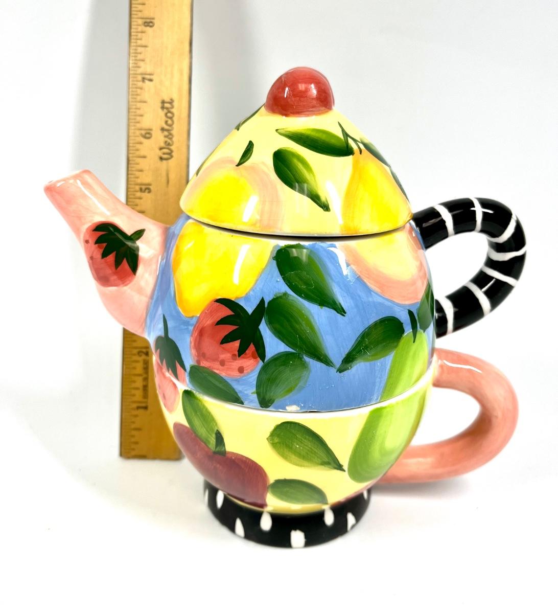 Bella Casa by Ganz Colorful Fruit Patterned Teapot & Cup Combo Stacking Set. Good condition.