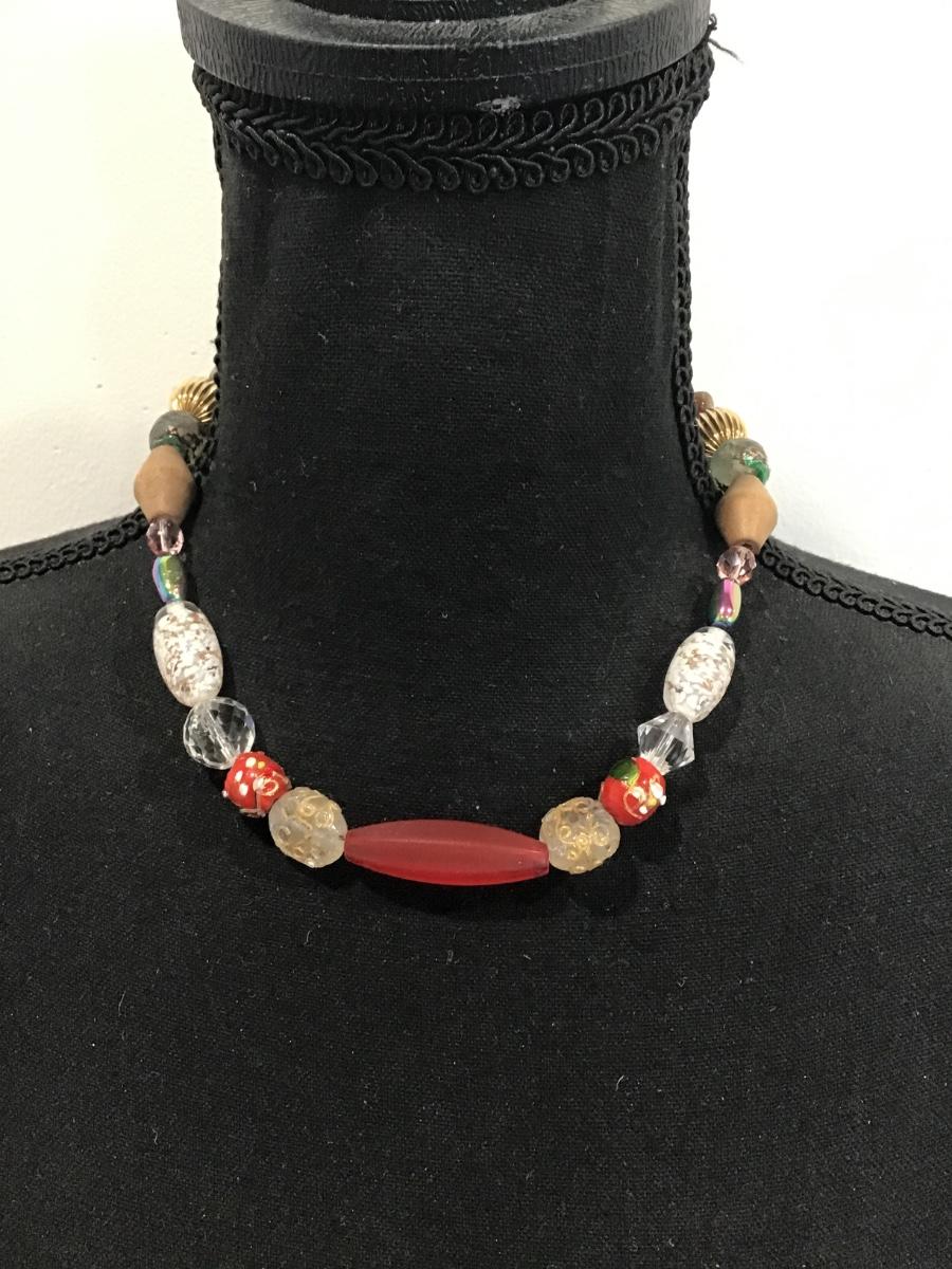 Multicolor polished stones with glass beaded necklace