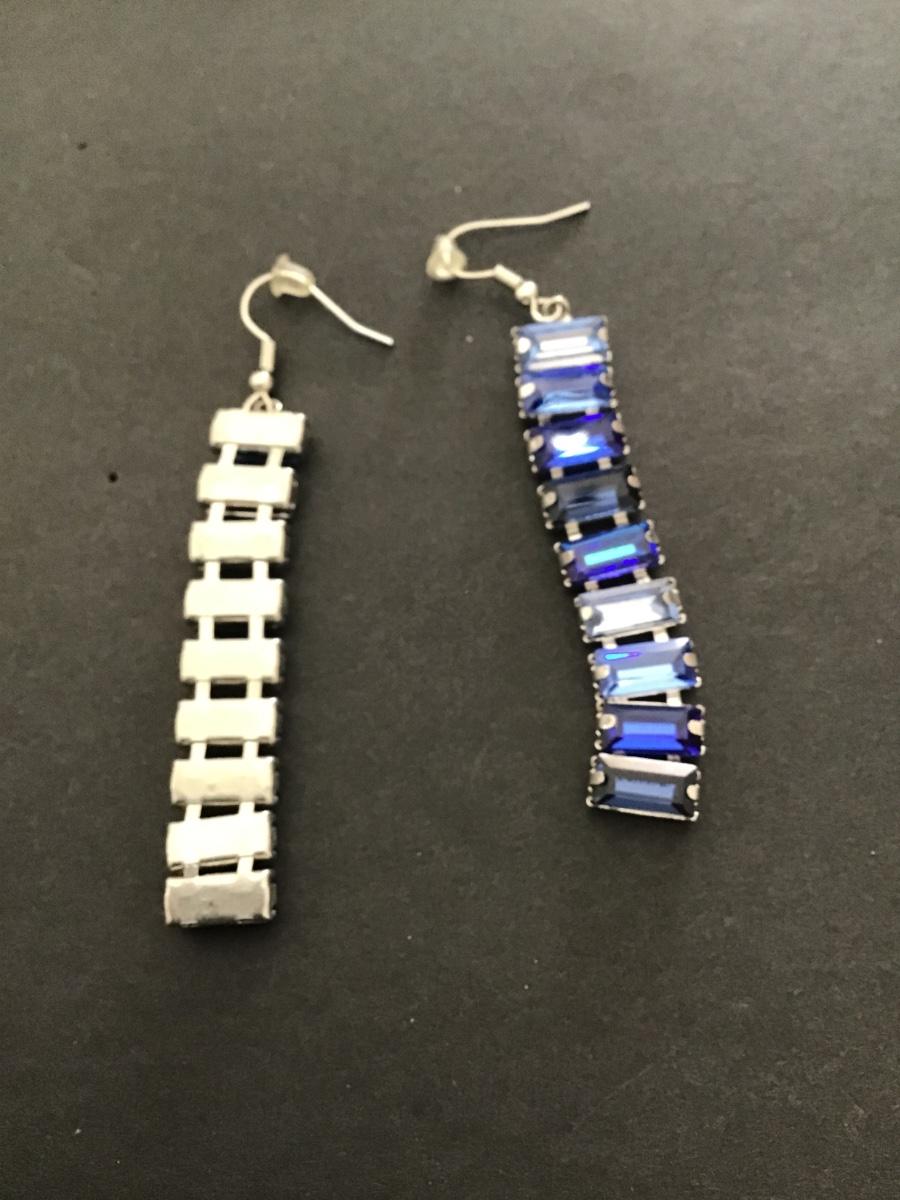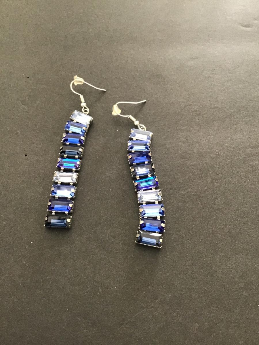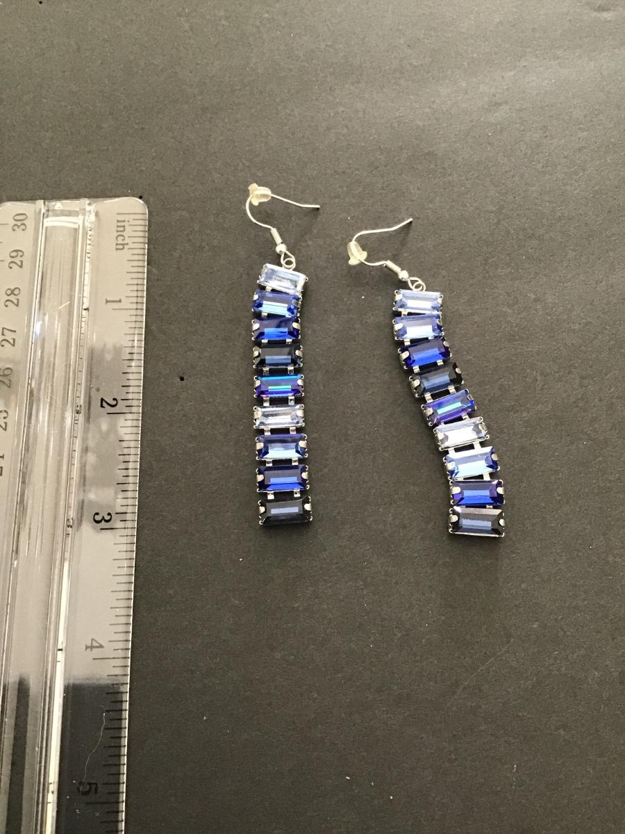 Multi colored rhinestone dangle earrings. Please see attached photos.